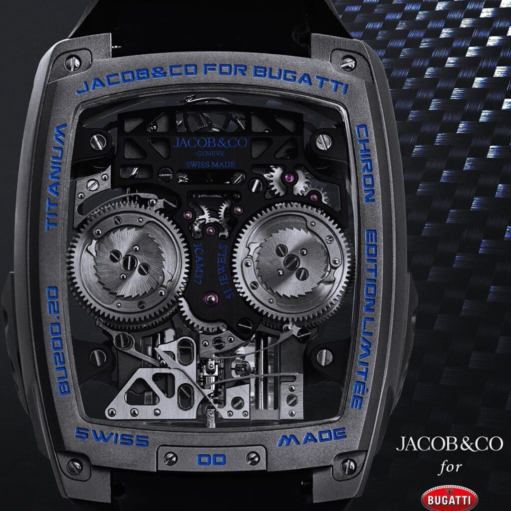 În anul în care Bugatti a marcat 110 ani de la apariţie, anul 2019, compania a semnat un parteneriat cu Jacob and Co., un lider în ceasuri complexe și o casă de bijuterii renumită, pentru a colabora la o serie de produse exclusive. Acest parteneriat reunește două companii care împărtășesc o pasiune pentru designul de ultimă oră, împingând limitele a ceea ce pare posibil din punct de vedere mecanic.