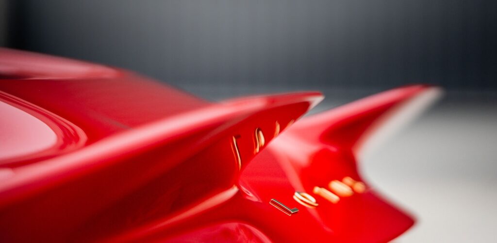 - Este un automobil omologat pentru a utiliza drumurile publice! Are o înălţime de doar 1.133 mm, iar jantele din aluminiu forjat pot măsura între 17 şi 19 inci. Blocurile optice sunt full LED, iar parbrizul are un singur ştergător central. Terminaţiile eşapamentului sport din titan sunt acoperite cu ceramică.