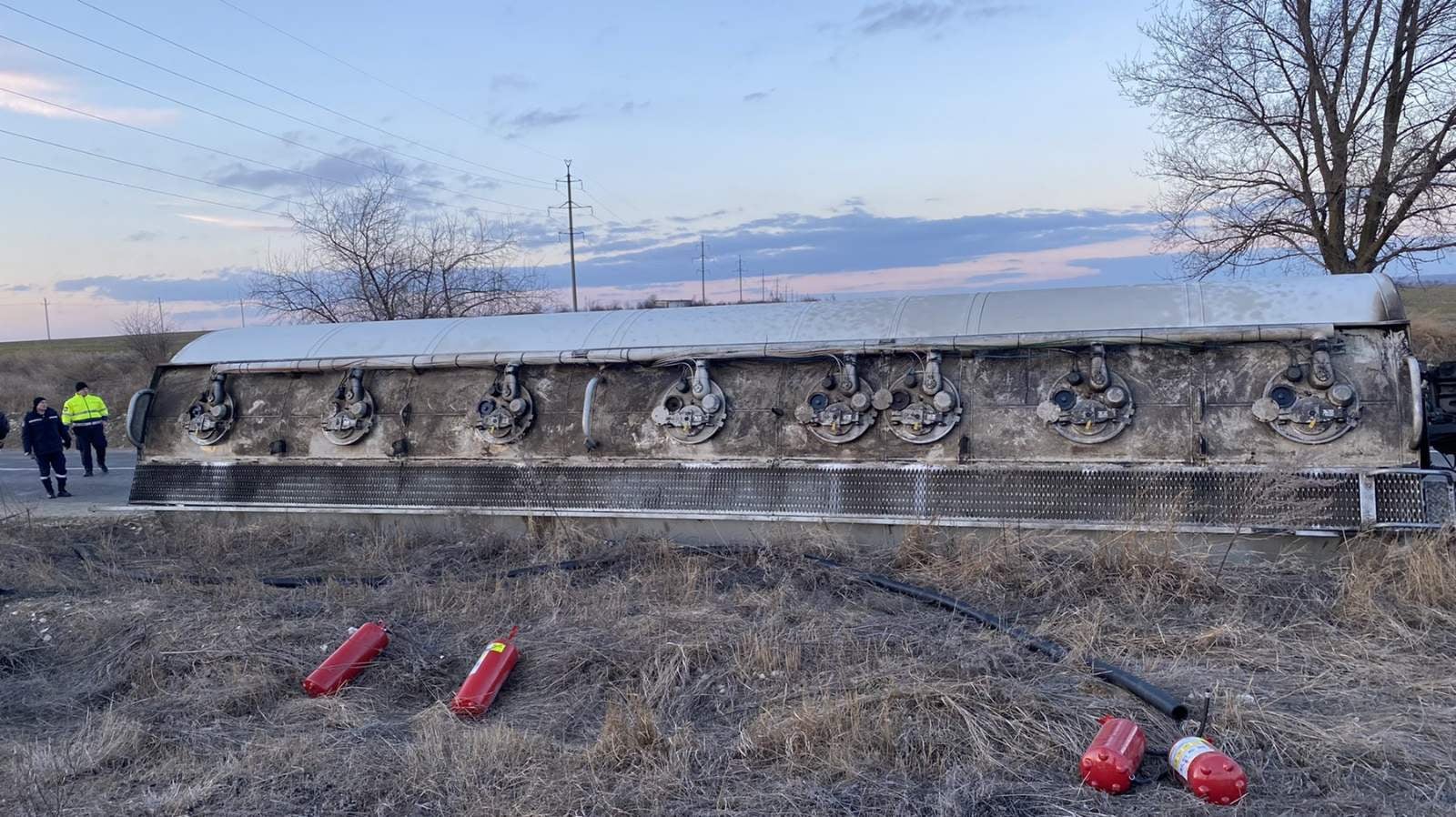 (video) O autocisternă cu 26 de tone de benzină s-a răsturnat aseară în raionul Taraclia