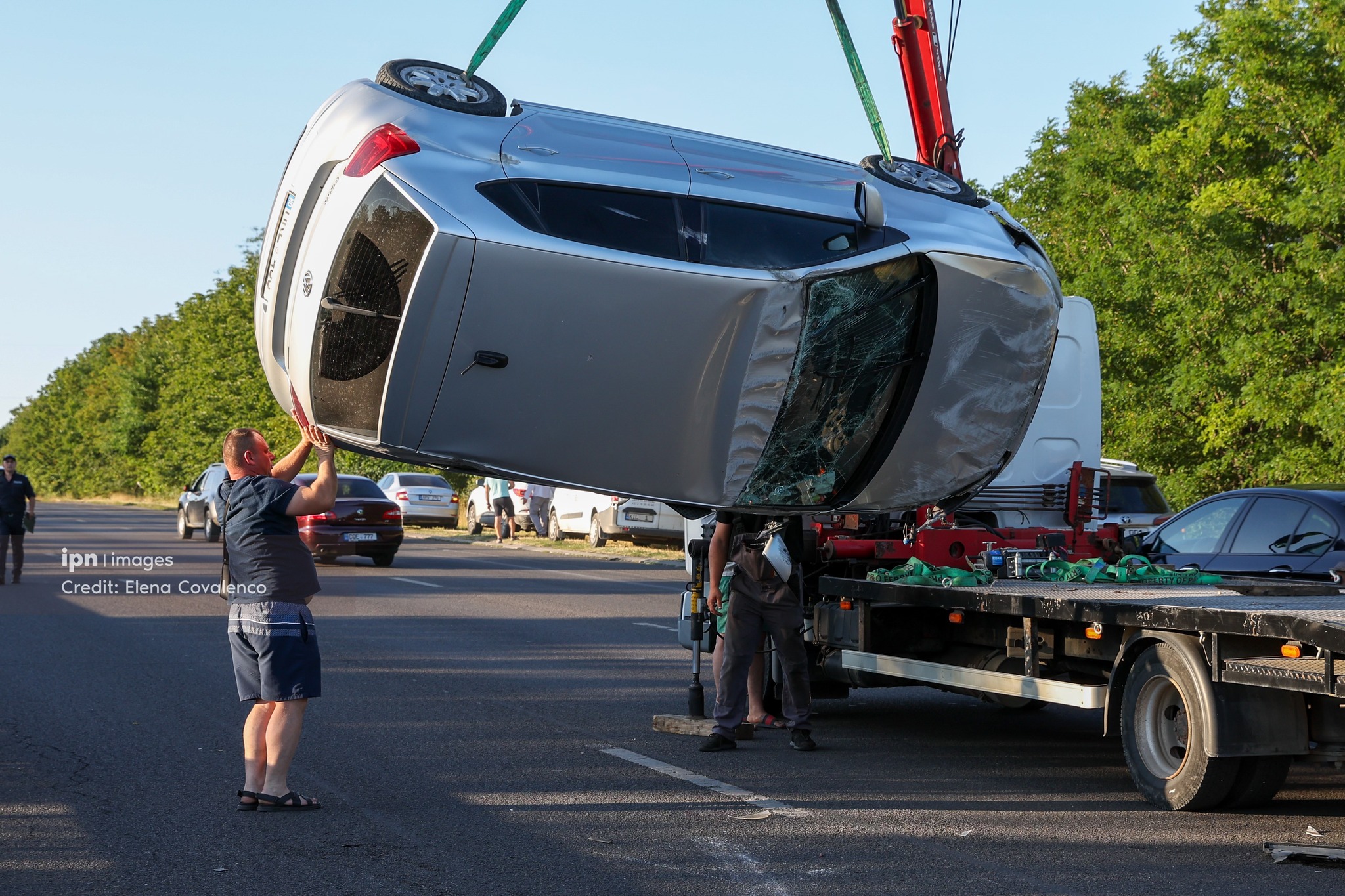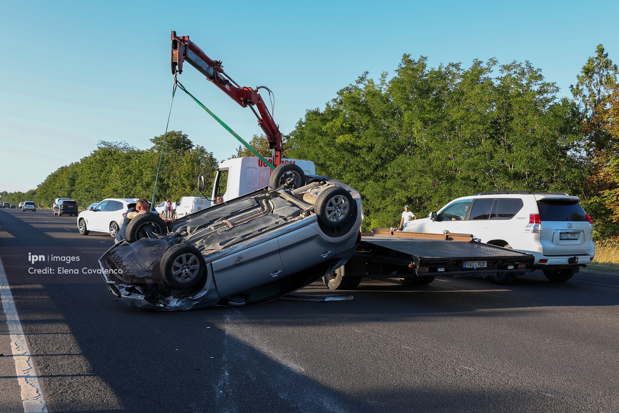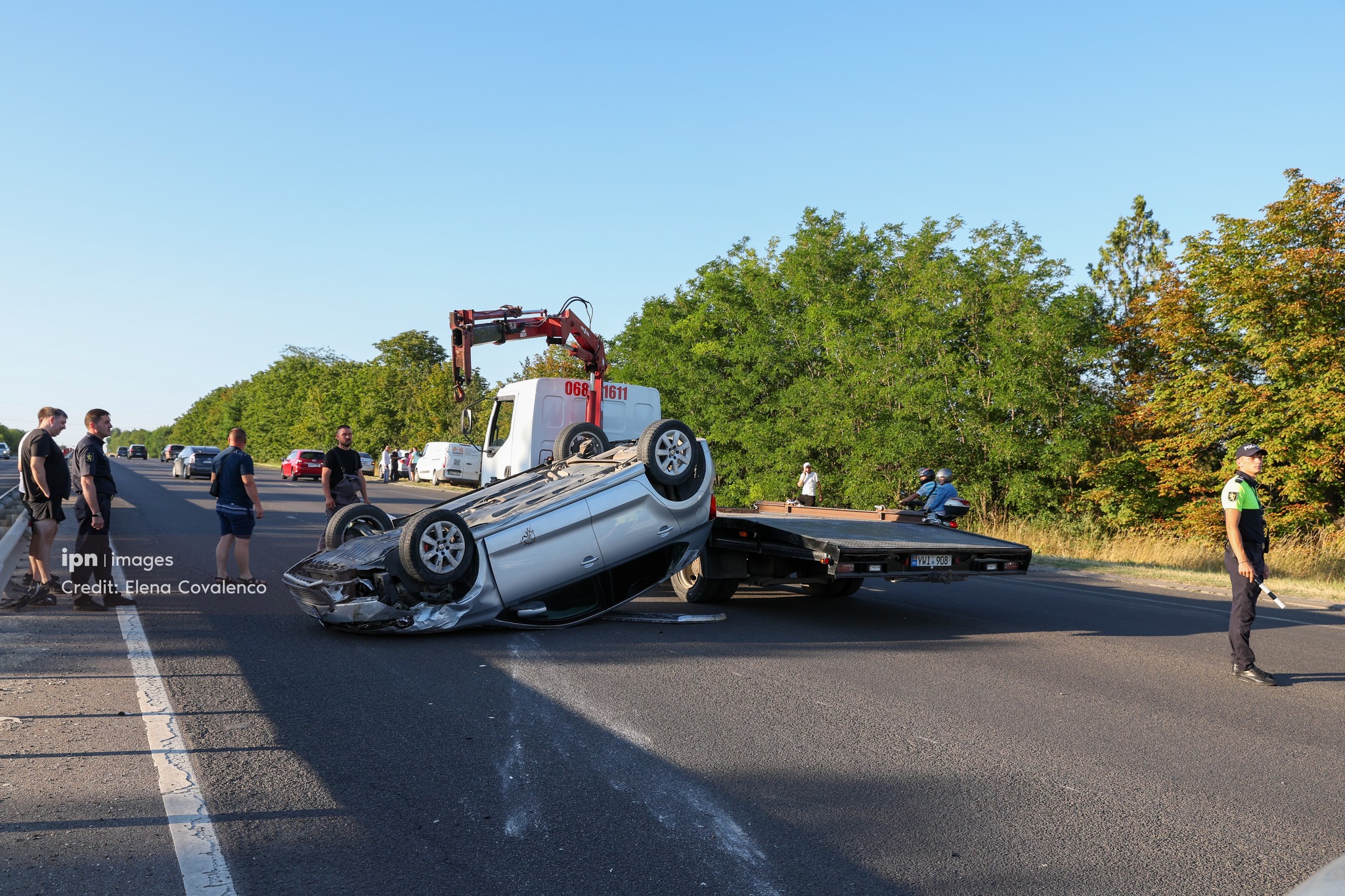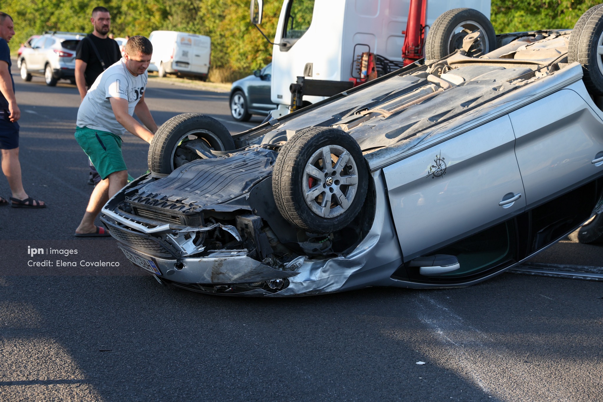 Potrivit datelor Poliției Capitalei, un VW, condus de o femeie în vârstă de 36 de ani, în timpul deplasării s-a lovit în parapet. Din cauza inerției a fost proiectat într-un Renault, iar ulterior s-a răsturnat pe carosabil.