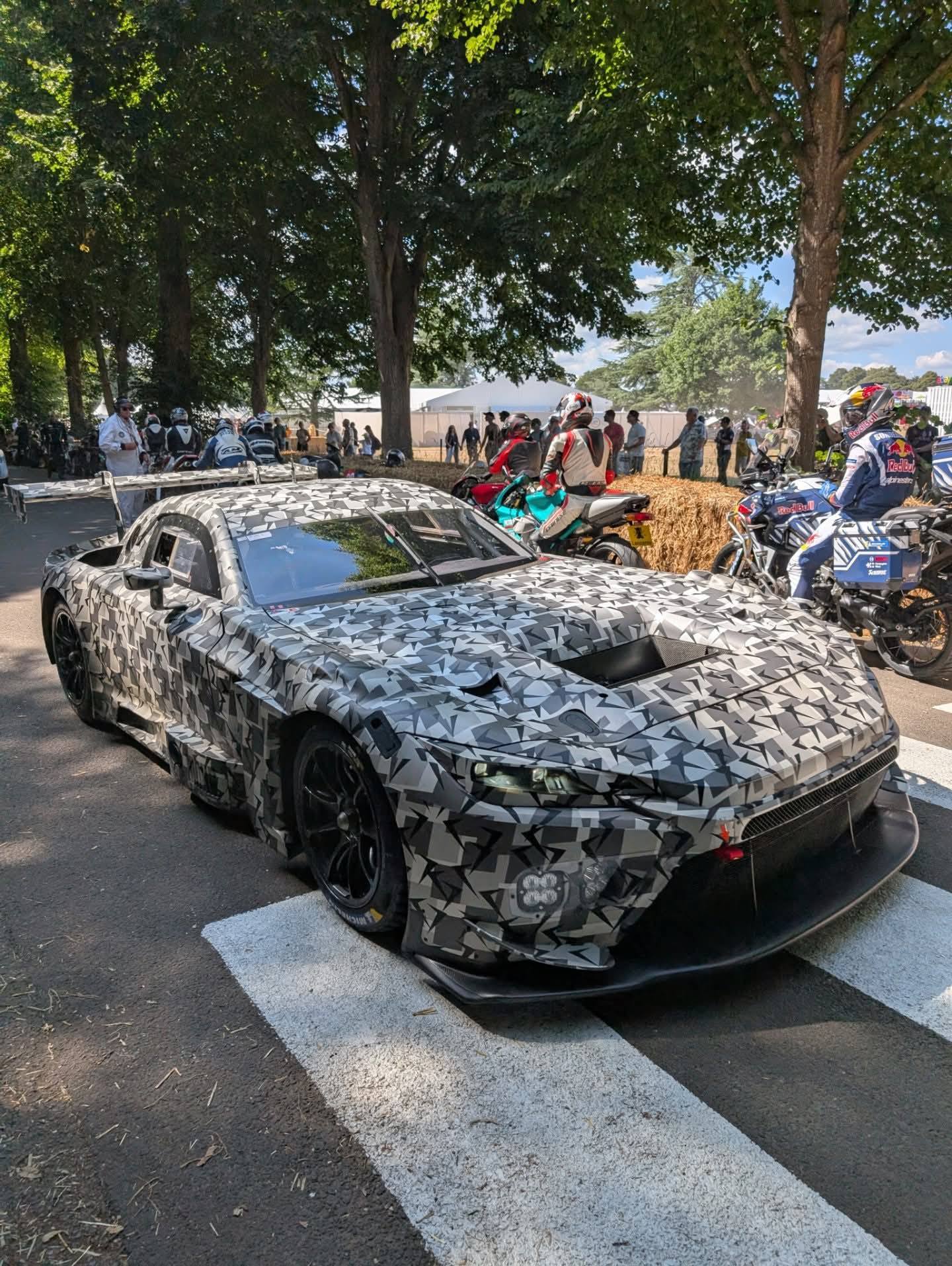 Anunțul inițial al Toyota pentru Festivalul de Viteză, făcut la sfârșitul lunii iunie, nu menționa apariția automobilului. Cu toate acestea, mașina de pistă a apărut neașteptat, urcând dealul celebru de la Goodwood, acompaniată de un prototip camuflat, considerat a fi varianta stradală.