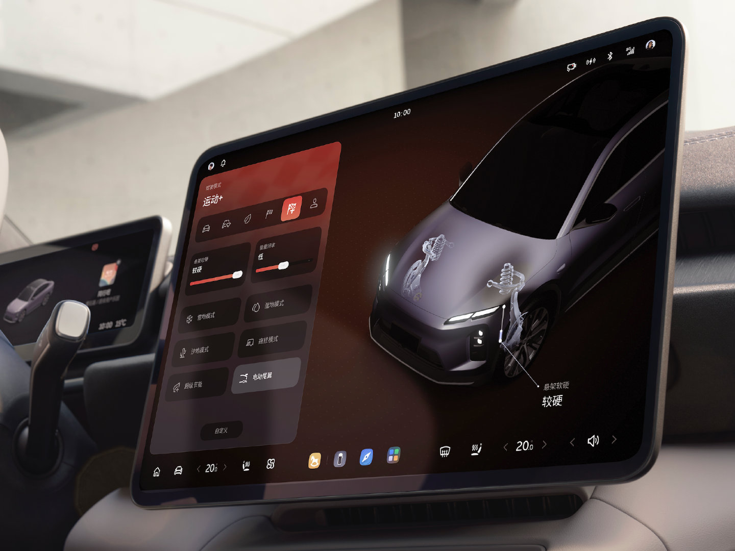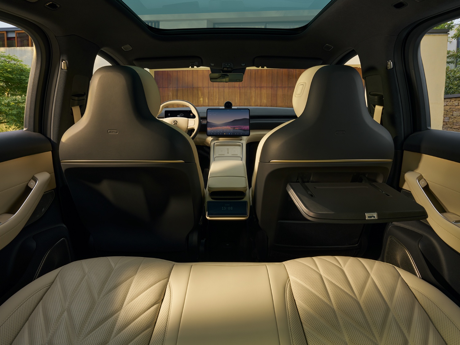 - Un ecran posterior de 6.6 inchi permite controlul preferințelor de climatizare și poziționare a scaunelor.