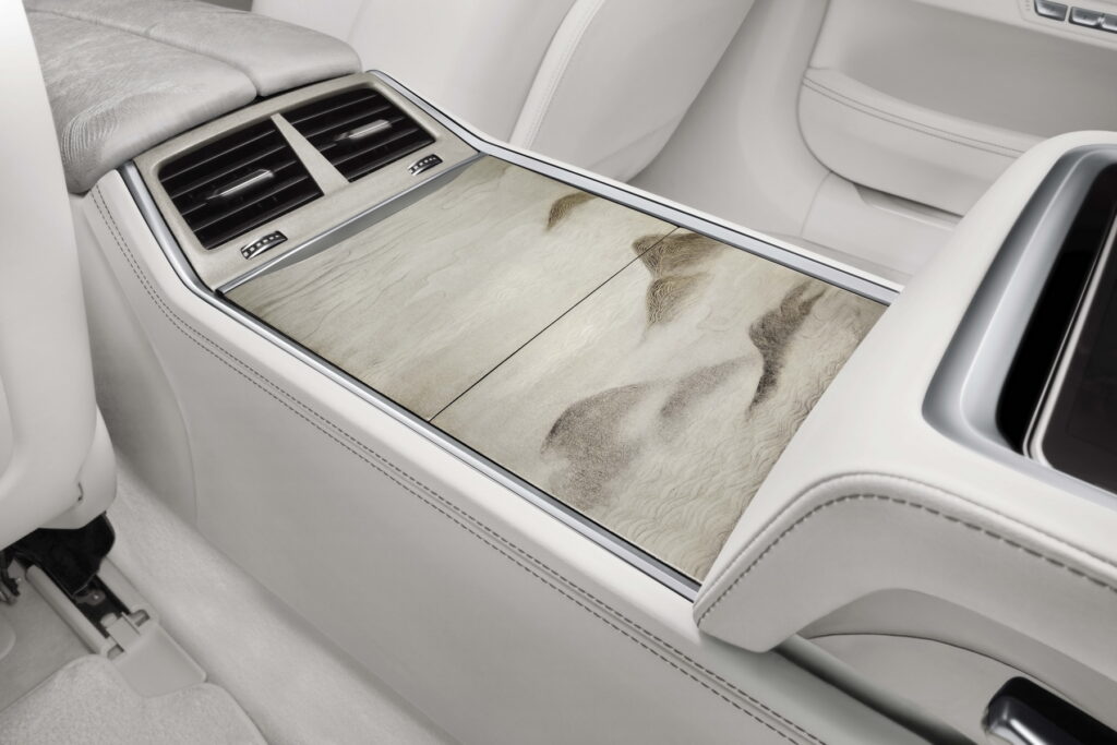 Pe partea inferioară a elementelor cotierei a fost aplicată prin incrustație un element tradiţional din perle naturale măcinate. Este frumos şi strălucitor când apare la lumina zilei şi este admirat din diferite unghiuri. Centurile de siguranţă la fel sunt personalizate, iar suporturile pentru picioare sunt tapiţate cu piele în două culori şi mai conţin o broderie în stil tradiţional.
