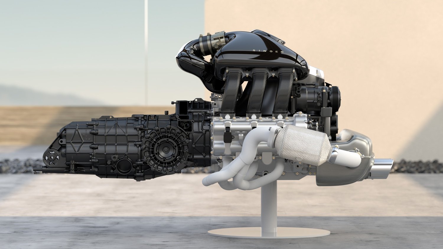 Motorul dezvoltă 426 CP și oferă o livrare a cuplului extinsă pe o plajă largă de turații. Rotațiile maxime pot depăși 8000 rpm. Este primul motor aspirat natural restaurat de Singer care combină aceste tehnologii, inspirat din programul DLS Turbo. Sistemul de evacuare din titan, nou dezvoltat, asigură un sunet clar și liber al propulsorului iconic.