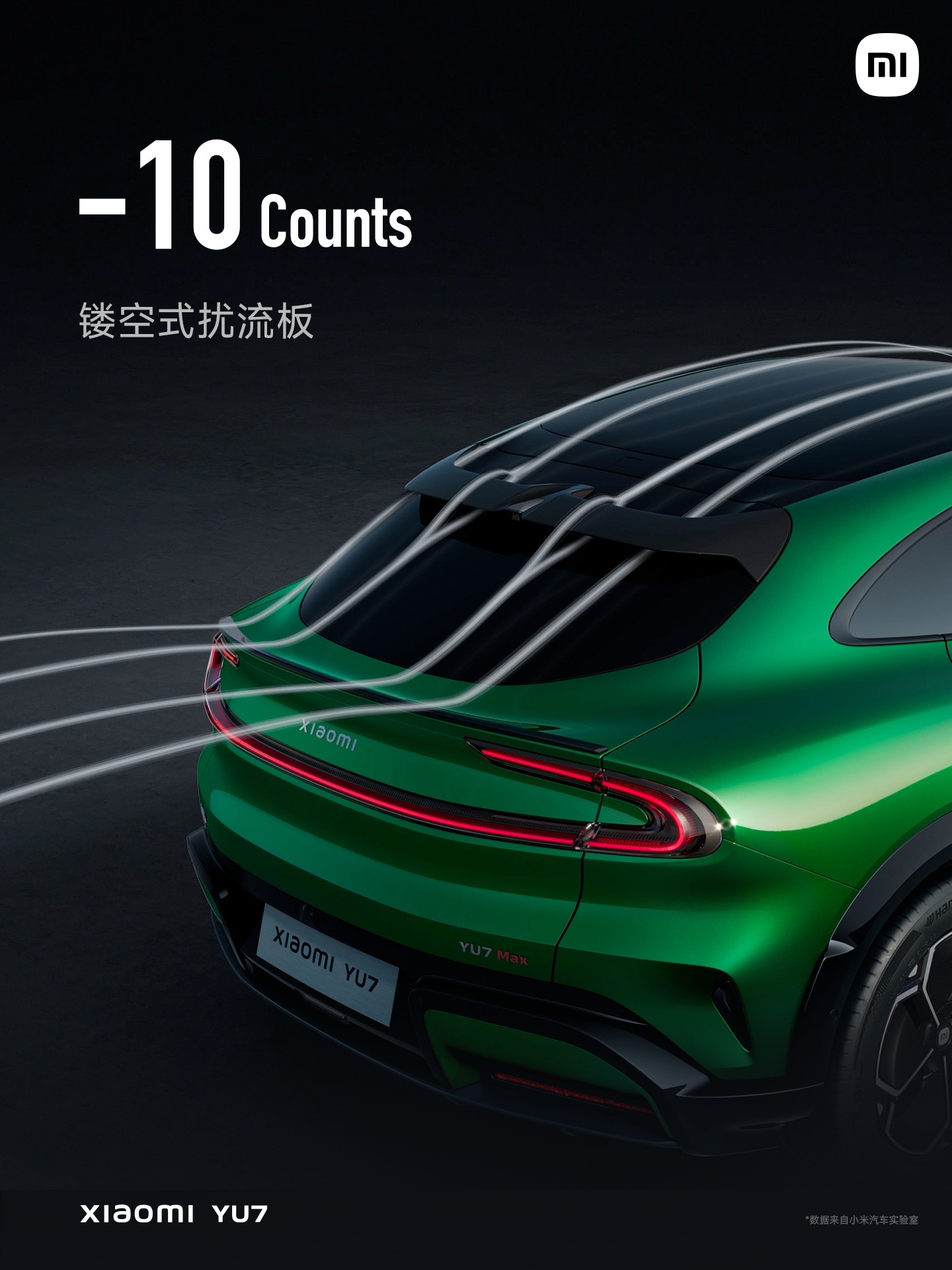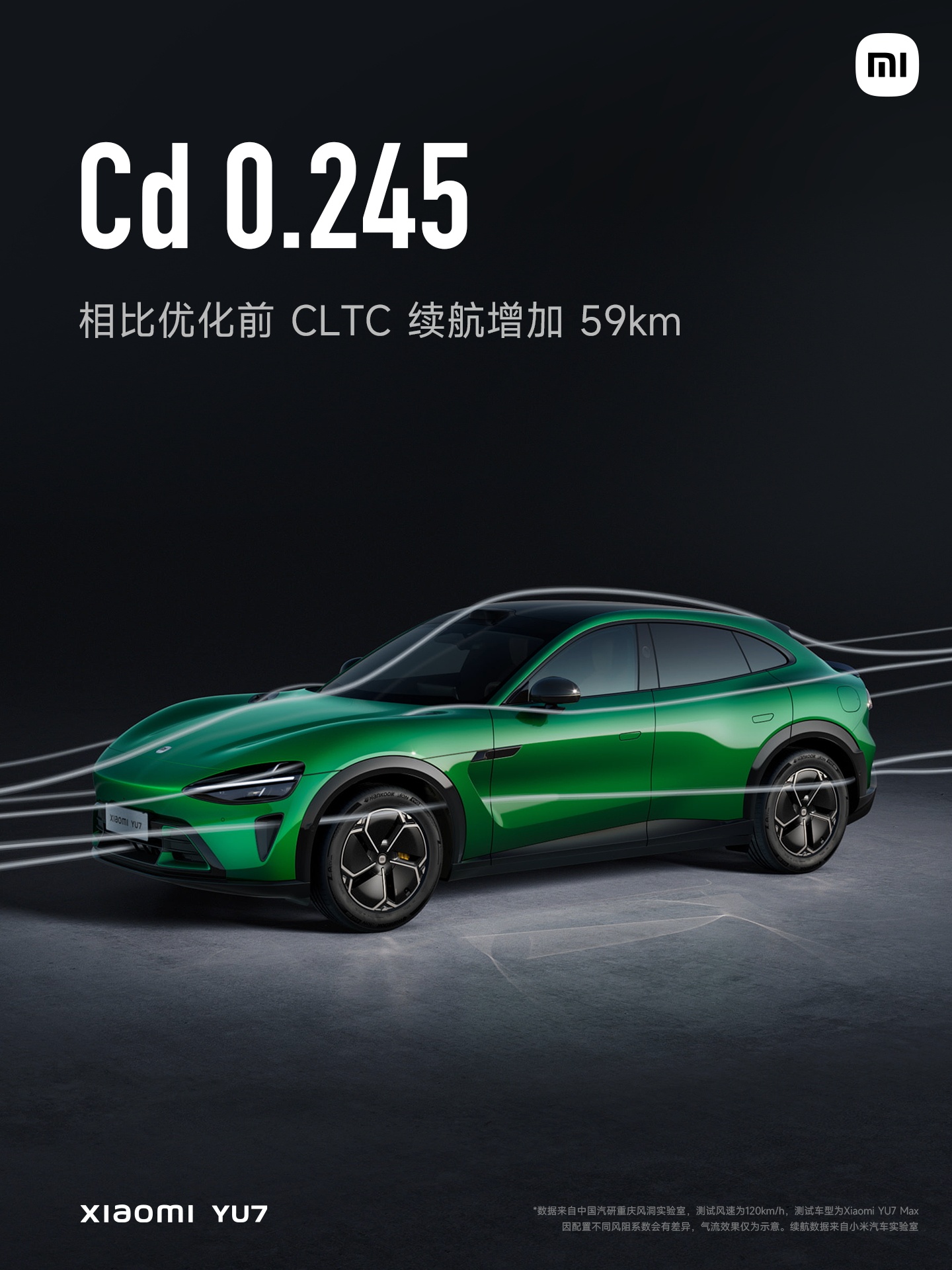 - Prin aceste optimizări meticuloase în peste 40 de zone de rafinare a fluxului de aer, Xiaomi YU7 atinge un coeficient de rezistență excepțional de 0,245 Cd, fapt care a adăugat 59 km CLTC la autonomie, stabilind o autonomie totală lider în clasa SUV-urilor sportive.