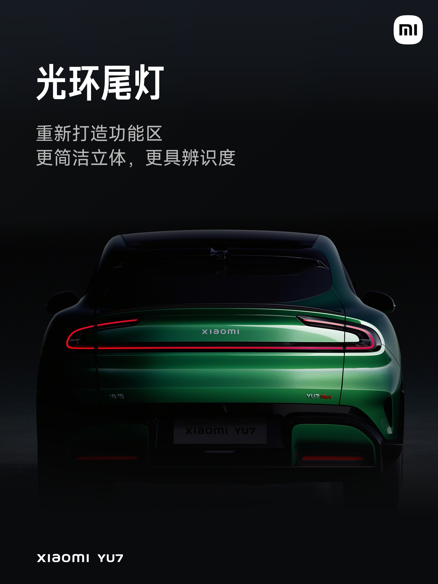 - Stopurile halo suferă o evoluție la fel de izbitoare, păstrând în același timp limbajul de design distinctiv al mărcii. Clusterele reproiectate obțin un aspect mai curat, mai sculptat, cu recunoaștere vizuală imediată. Comparativ cu SU7, stopurile lui YU7 prezintă colțuri înclinate în jos care accentuează postura, creând un profil posterior mai musculos. Cel mai notabil, Xiaomi a implementat iluminare premium ultra-roșie (lungimi de undă > 632 nm) – o caracteristică a vehiculelor de lux – oferind o vizibilitate de neegalat pe timp de noapte.