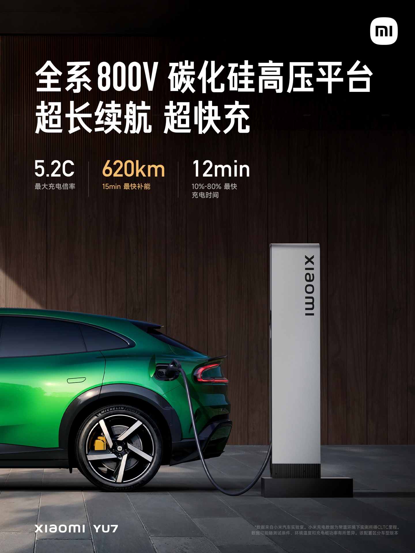 - Puterea de încărcare a bateriilor nu a fost anunțată la moment, însă se declară cea mai rapidă reaprovizionare – 620 km în 15 minute (rată 5.2C); 10-80% în 12 minute pe YU7 Max!