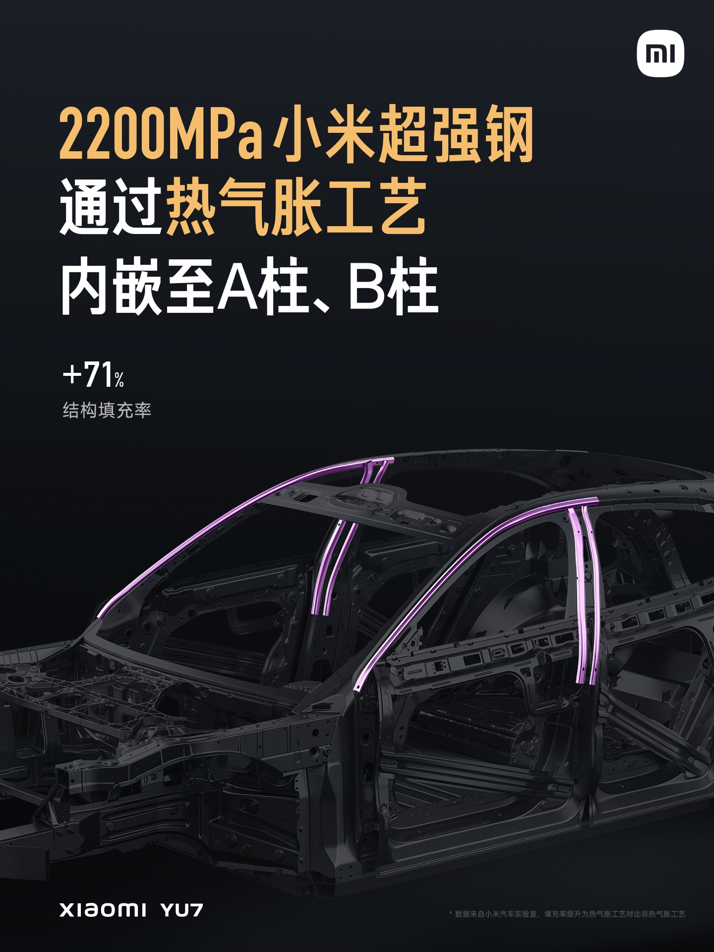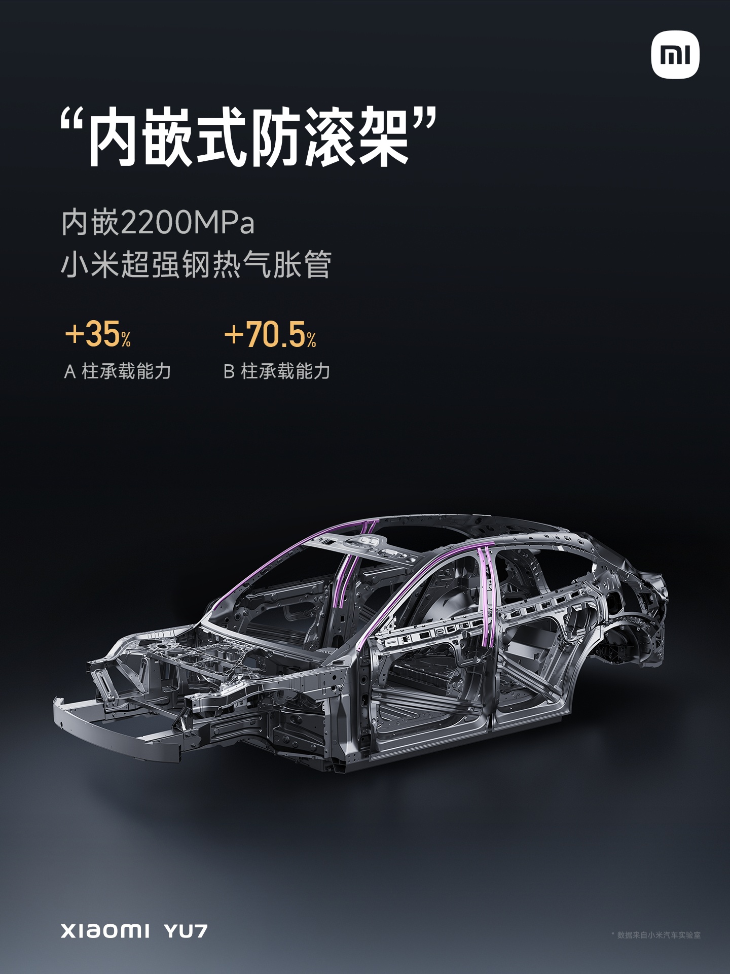 - Xiaomi YU7 introduce aplicarea îmbunătățită a “oțelului cu rezistență ultra-înaltă Xiaomi 2200 MPa”, un nou material dezvoltat de Xiaomi EV în colaborare cu cele mai importante companii tehnologice, instituții de cercetare și universități naționale.