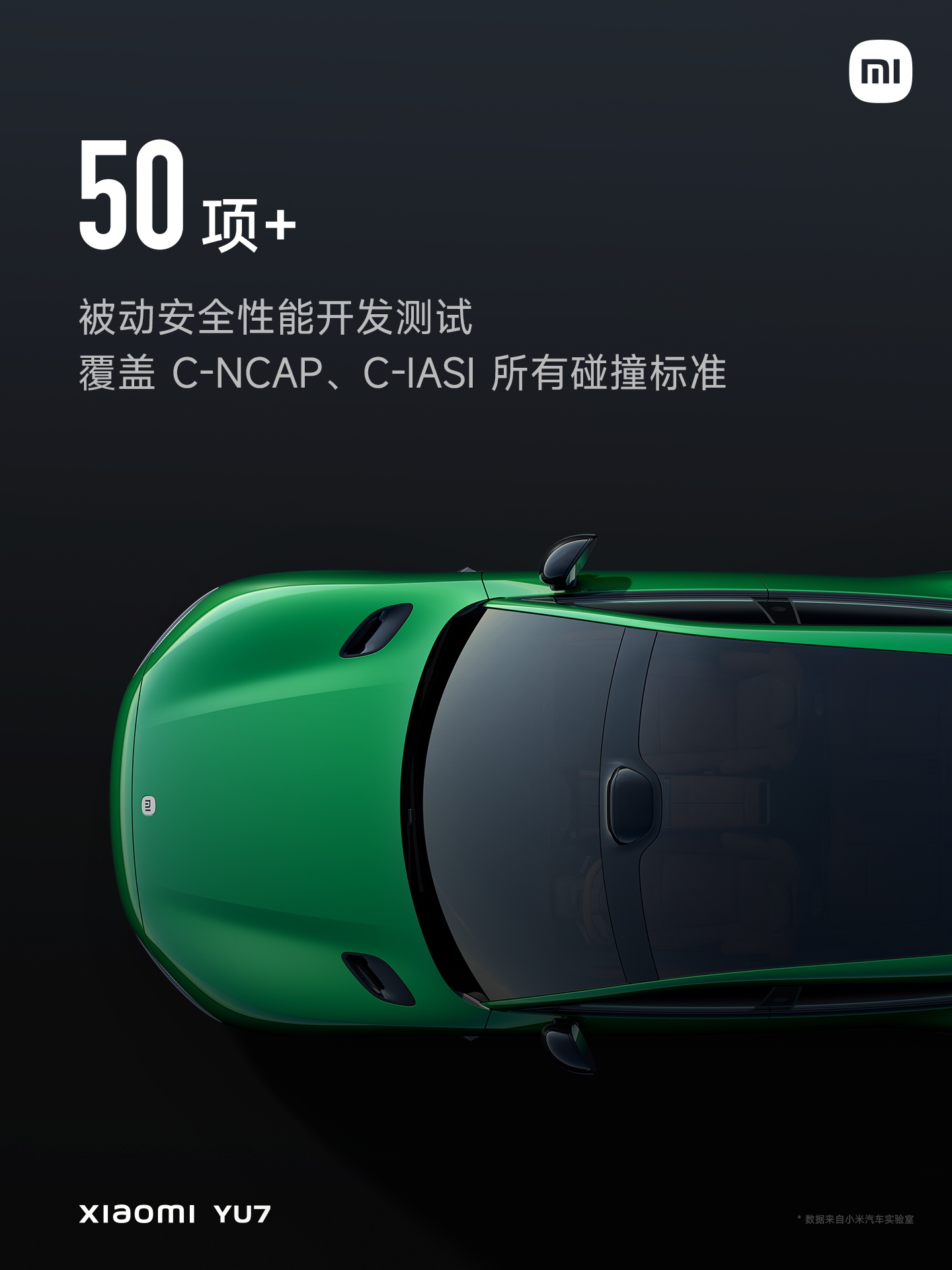 - În ceea ce privește siguranța pasivă, Xiaomi YU7 a trecut cu succes peste 50 de teste de dezvoltare a siguranței pasive, inclusiv scenarii standard și peste standard, acoperind pe deplin toate standardele de crash teste conform protocoalelor C-NCAP și C-IASI.
