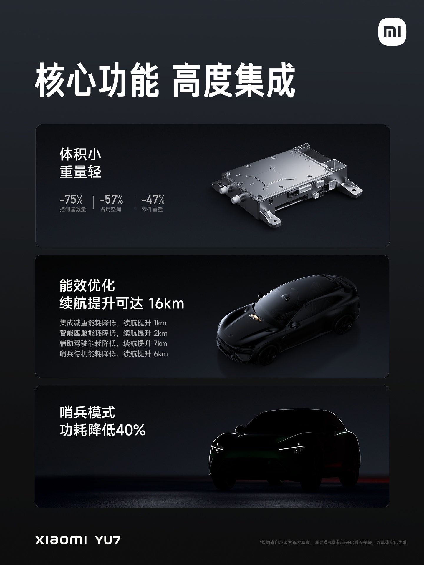- “Four-in-One Domain Control Module” nu numai că reduce dimensiunea și greutatea (reducând numărul de controlere cu 75%, economisind 57% din spațiu și diminuând greutatea componentelor de la 6.85 la 3.6 kg, o reducere de 47%), dar realizează și optimizarea eficienței energetice la nivelul întregului sistem.