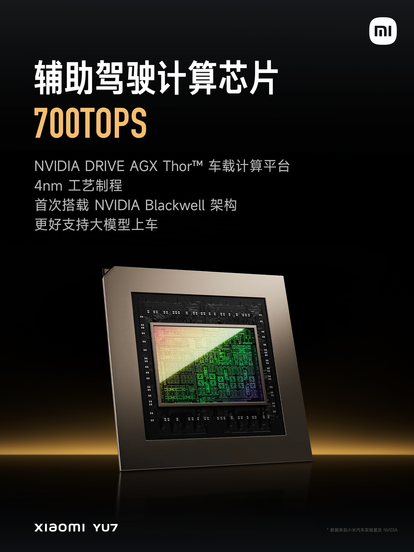 - Xiaomi YU7 mai este echipat cu platforma de calcul la bord NVIDIA DRIVE AGX Thor™ de ultimă generație pentru conducerea asistată, care este construită pe un proces de 4 nm și oferă 700 TOPS de putere de calcul. De asemenea, prezintă pentru prima dată arhitectura NVIDIA Blackwell, oferind un suport mai puternic pentru modelele mari pe dispozitiv și oferind o experiență mai bună de conducere asistată.