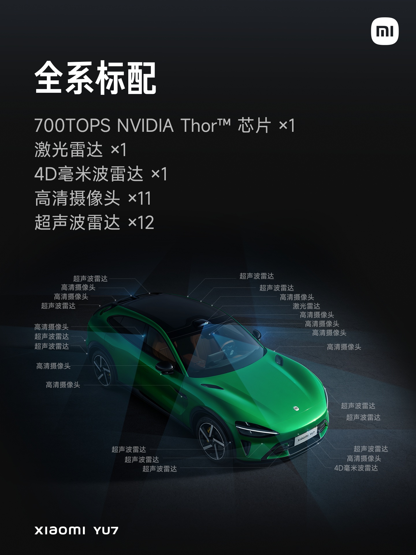 - Incluzând informațiile de mai sus, orice Xiaomi YU7 are la bord: un cip NVIDIA Thor, un LiDAR, un radar cu unde milimetrice 4D, 11 camere de înaltă definiție și 12 radare cu ultrasunete.