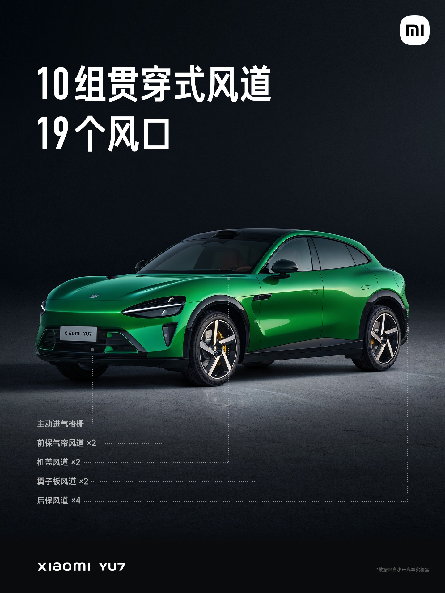 - În ceea ce privește aerodinamica, Xiaomi YU7 moștenește arhitectura multi-duct avansată a lui SU7 în ingineria aerodinamică, încorporând 10 grupuri de conducte de aer penetrante și 19 ieșiri de aer optimizate pentru a gestiona cu precizie fluxul de aer.