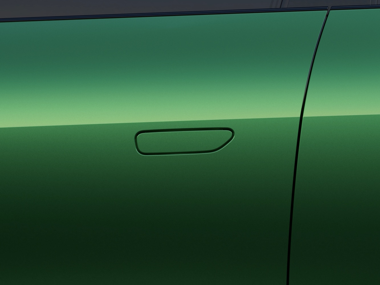 - Culoarea Verde Smarald, extrem de rară și intens saturată, este inspirată de smaraldele columbiene și rezervată de obicei mașinilor sport premium. Finisajul folosește un sistem complex de vopsire cu două straturi, cu trei rezervoare de nuanțe specializate, spre deosebire de vopselele tradiționale cu un singur rezervor. Procesul începe cu un strat de bază verde-galben metalizat, conținând fulgi de aluminiu ultrafini (aproximativ 1/5 din diametrul unui fir de păr) pentru a reda bogăția cromatică a smaraldului. Peste acesta se aplică un strat perlat translucid, care imită dinamismul refracției luminii al pietrei prețioase. Un amestec perlat-metalizat este aplicat exclusiv pe panourile interioare, conferind profunzime chiar și suprafețelor ascunse. Combinat cu designul sculptat al Xiaomi YU7, finisajul Verde Smarald creează schimbări de culoare fascinante, dependente de lumină, emanând rafinament.
