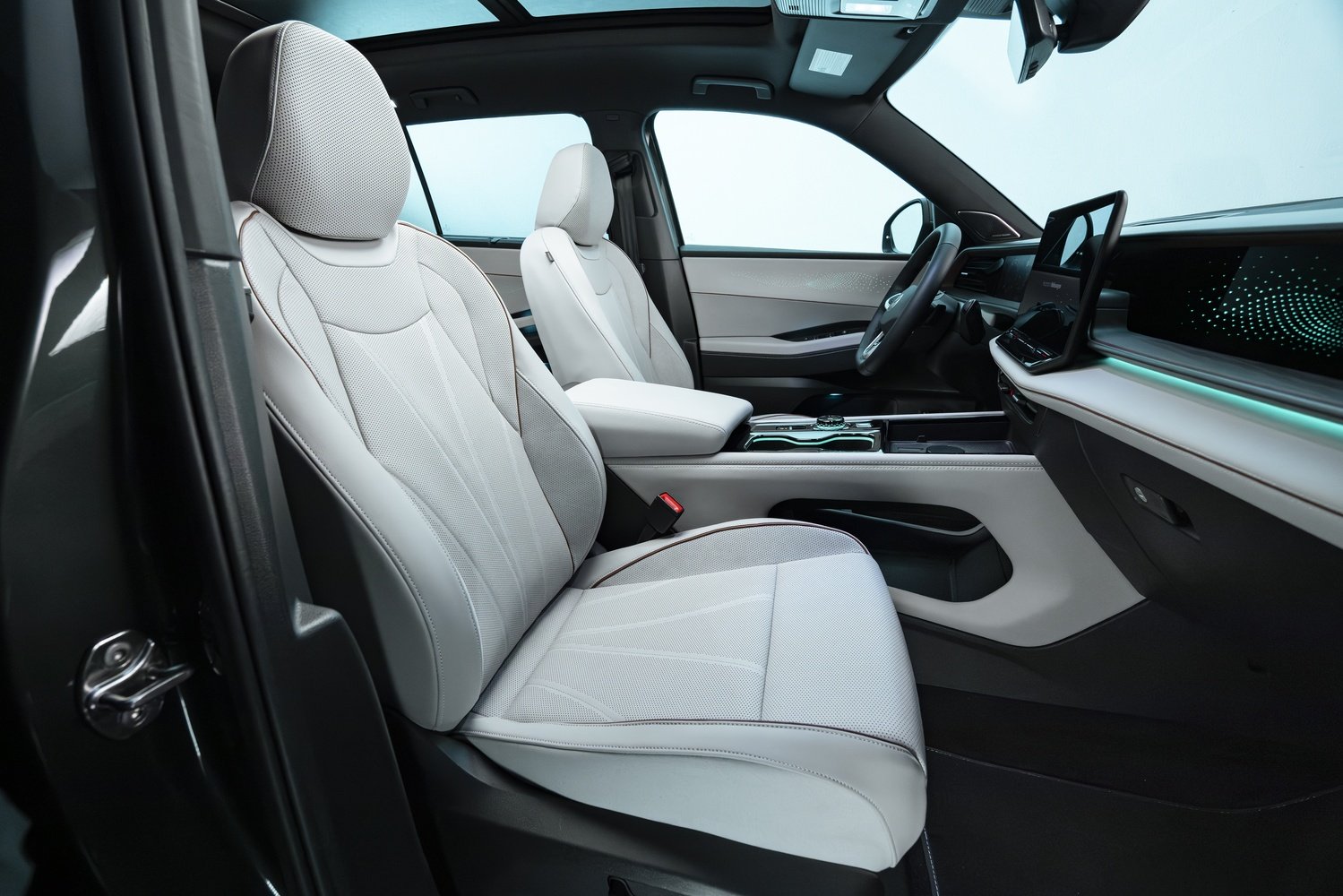 Scaunele frontale beneficiază de suport pentru coapse, suport lombar reglabil în patru direcții, reglaje electrice în 12 direcții și funcție de masaj pe patru zone (opțiune pe ambele scaune față).