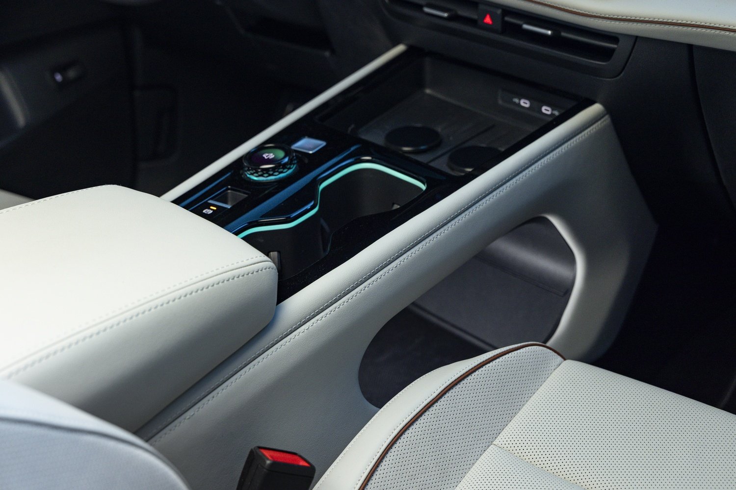 - Tunel central generos, cu spațiu pentru două telefoane și încărcare wireless Qi2.