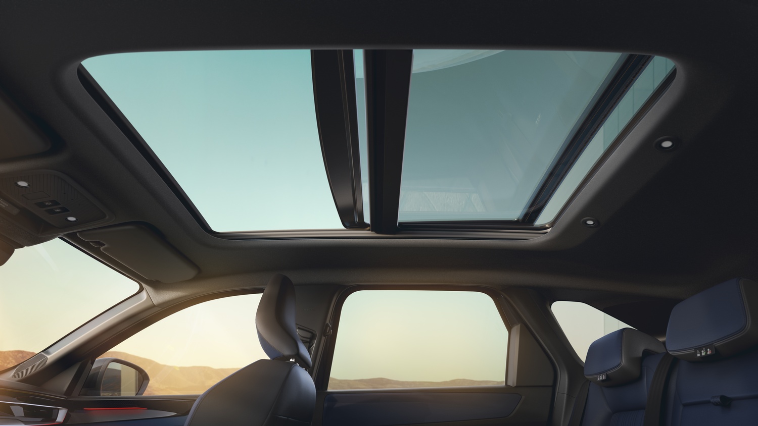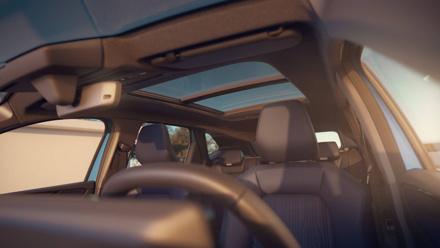• Acoperiș în două tonuri (negru contrastant), bare de plafon din aluminiu, plăci de protecție și trapa panoramică.