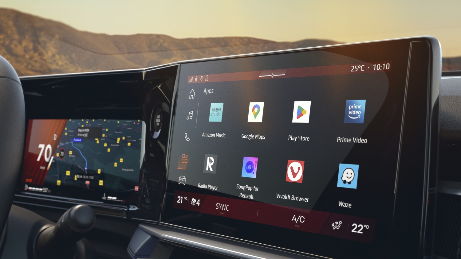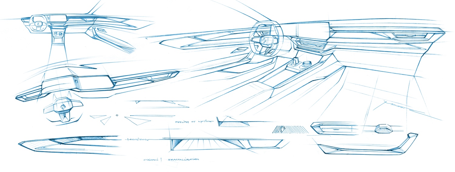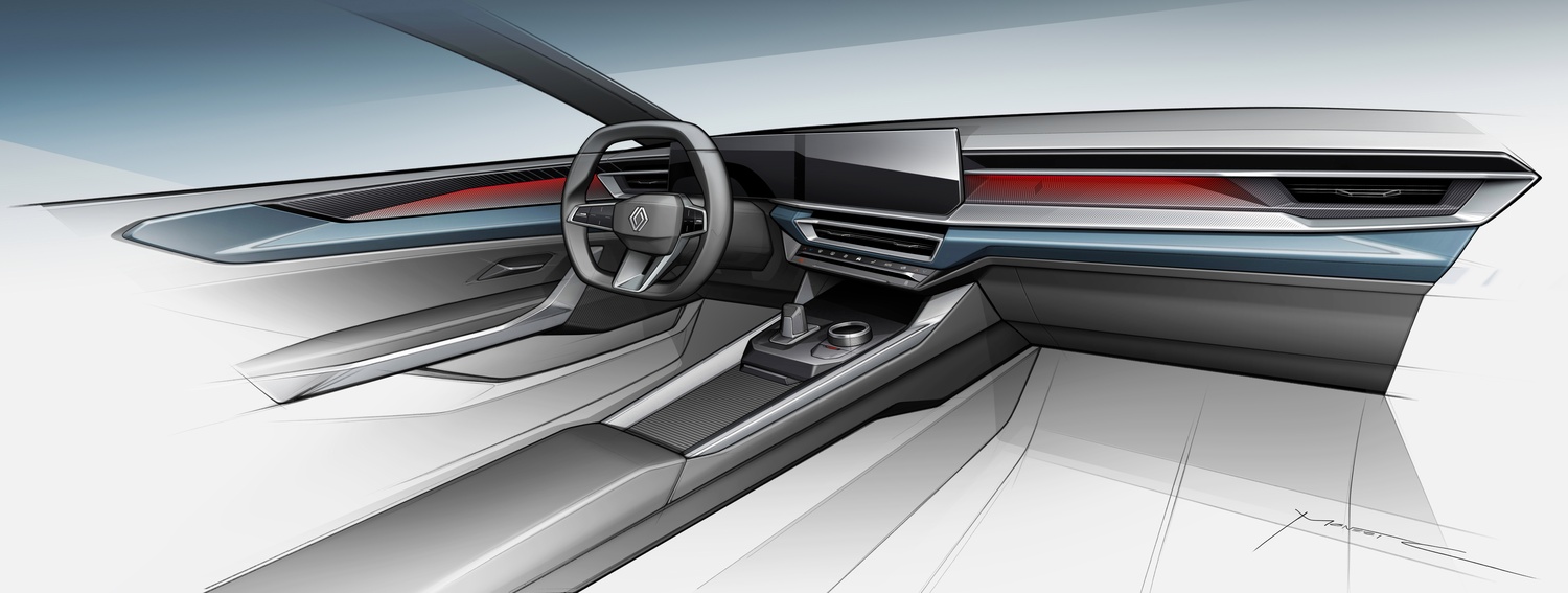 • Design inspirat de noile Renault 5 E-Tech și Renault 4 E-Tech, cu sistem OpenR cu două ecrane orizontale.