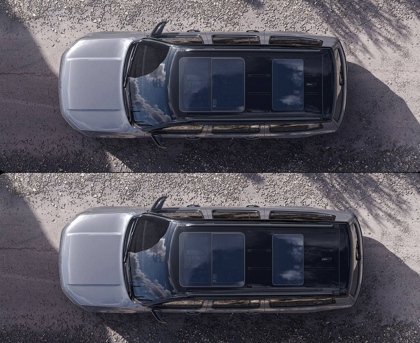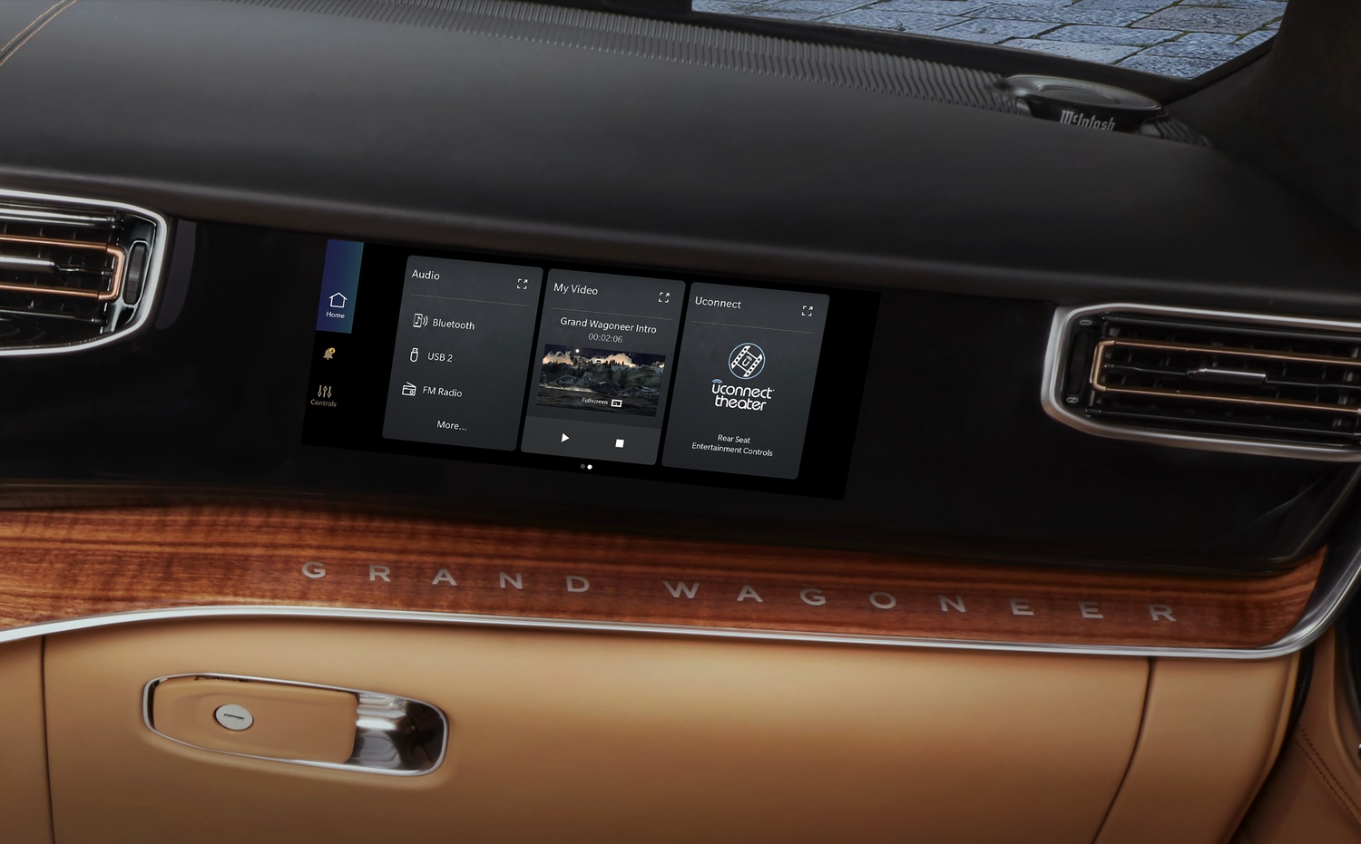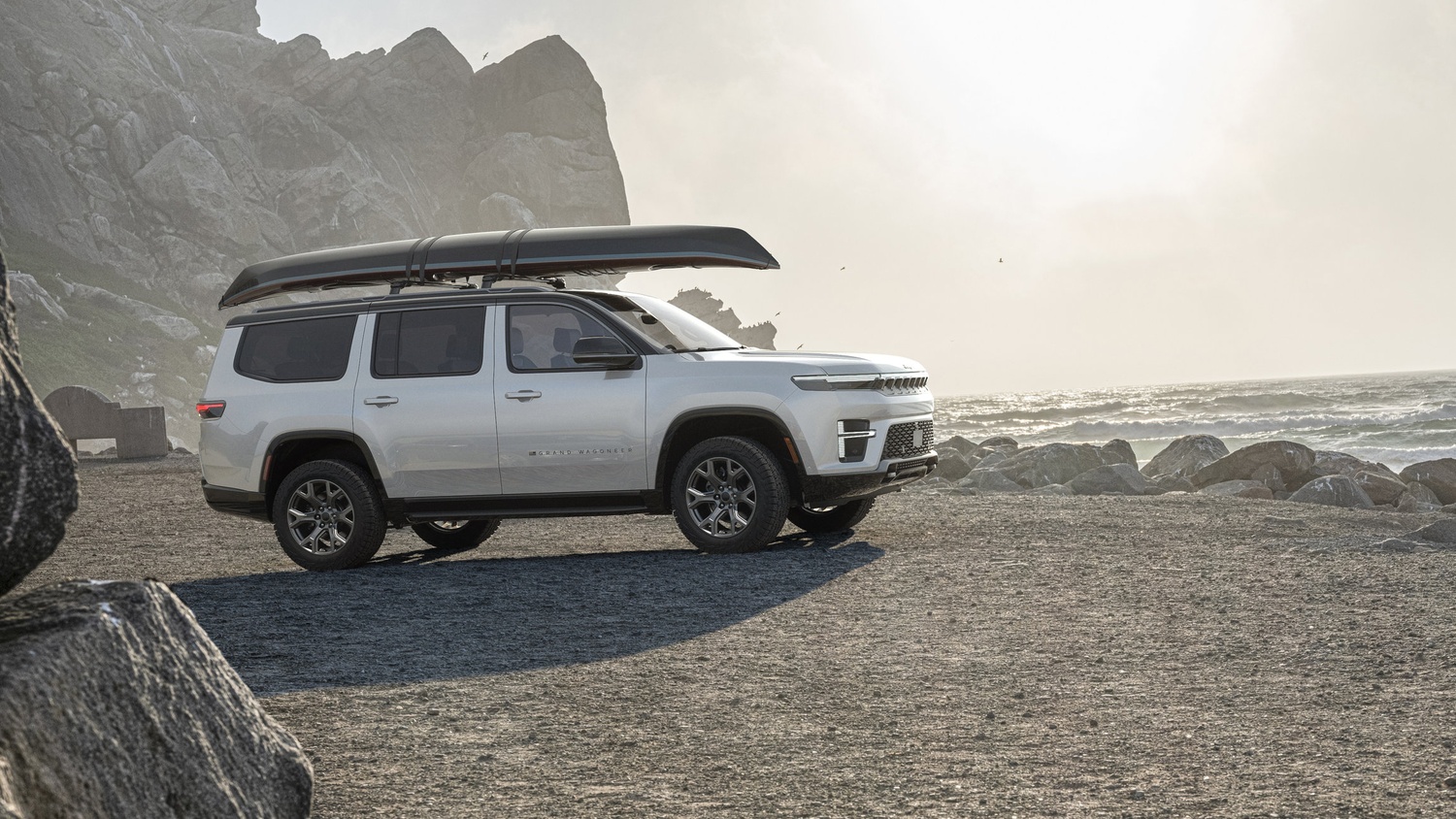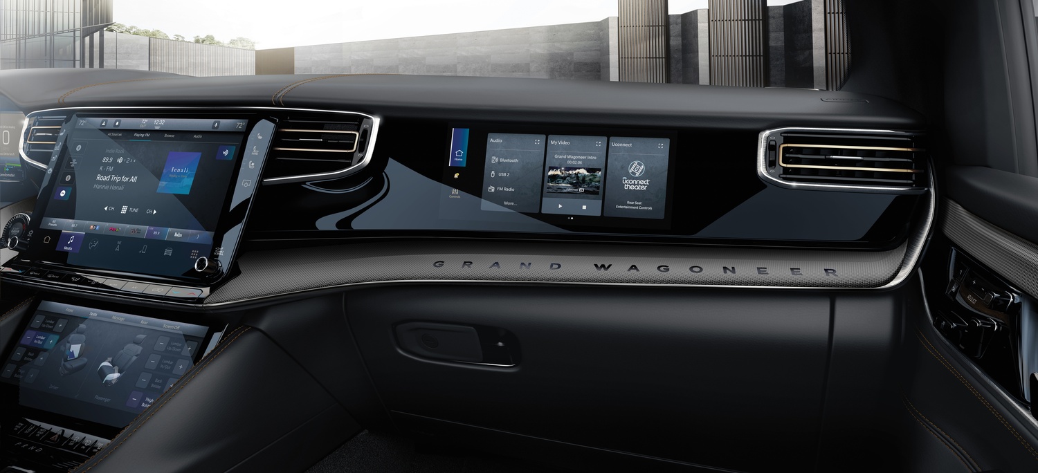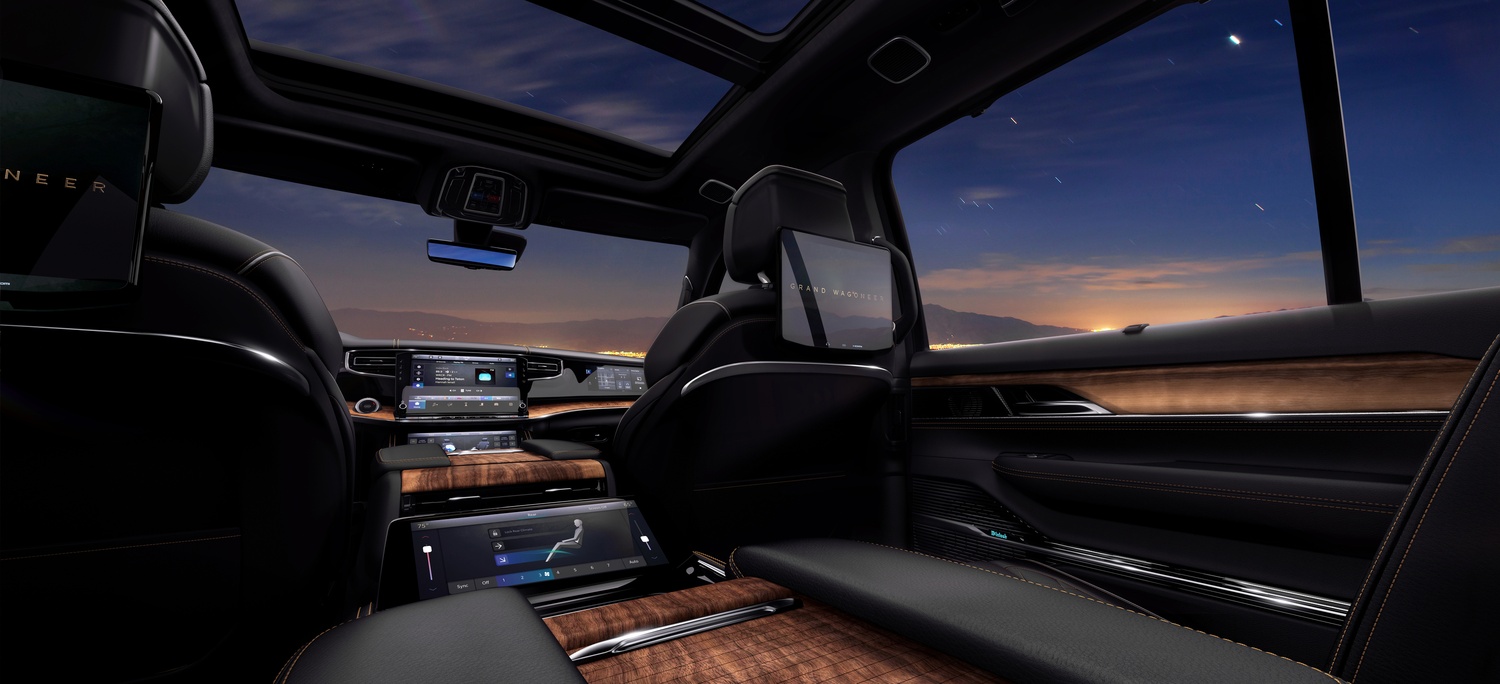 - Se introduce un exterior complet fără crom, o premieră pentru Grand Wagoneer, adoptând în schimb o paletă mai rafinată și modernă prin utilizarea materialelor sustenabile.