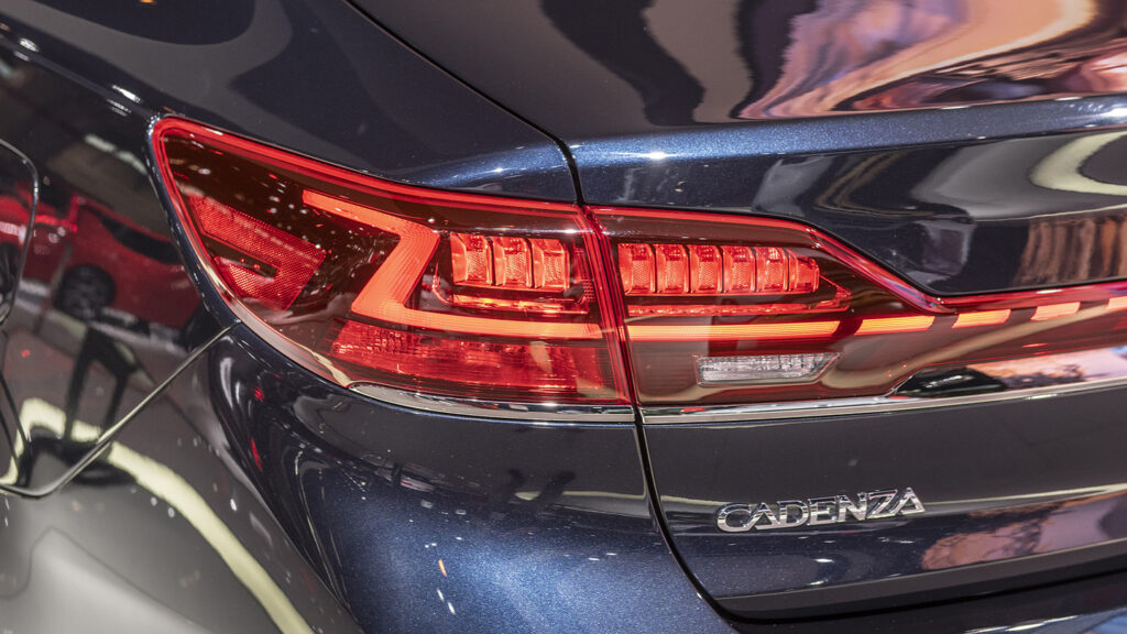 Procedura de modificare a modelului Cadenza a mers pe aceleaşi etape după care s-a procedat în cazul lui K7. La exterior a primit noi faruri LED multi-lens, o nouă grilă de radiator mai impunătoare, noi stopuri conectate printr-o fâşie luminoasă întreruptă, o nouă capotă, un capac al portbagajului modificat şi evident bare de protecţie actualizate.