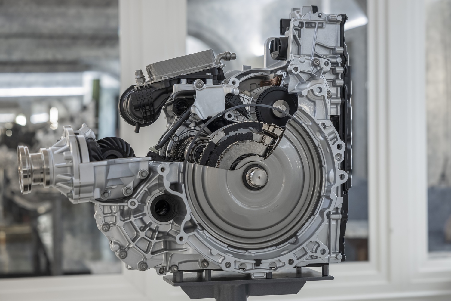 - Motorul electric de 27 CP, inclusiv invertorul, este integrat într-o transmisie nouă, foarte compactă, cu dublu ambreiaj și opt trepte (8F-eDCT).