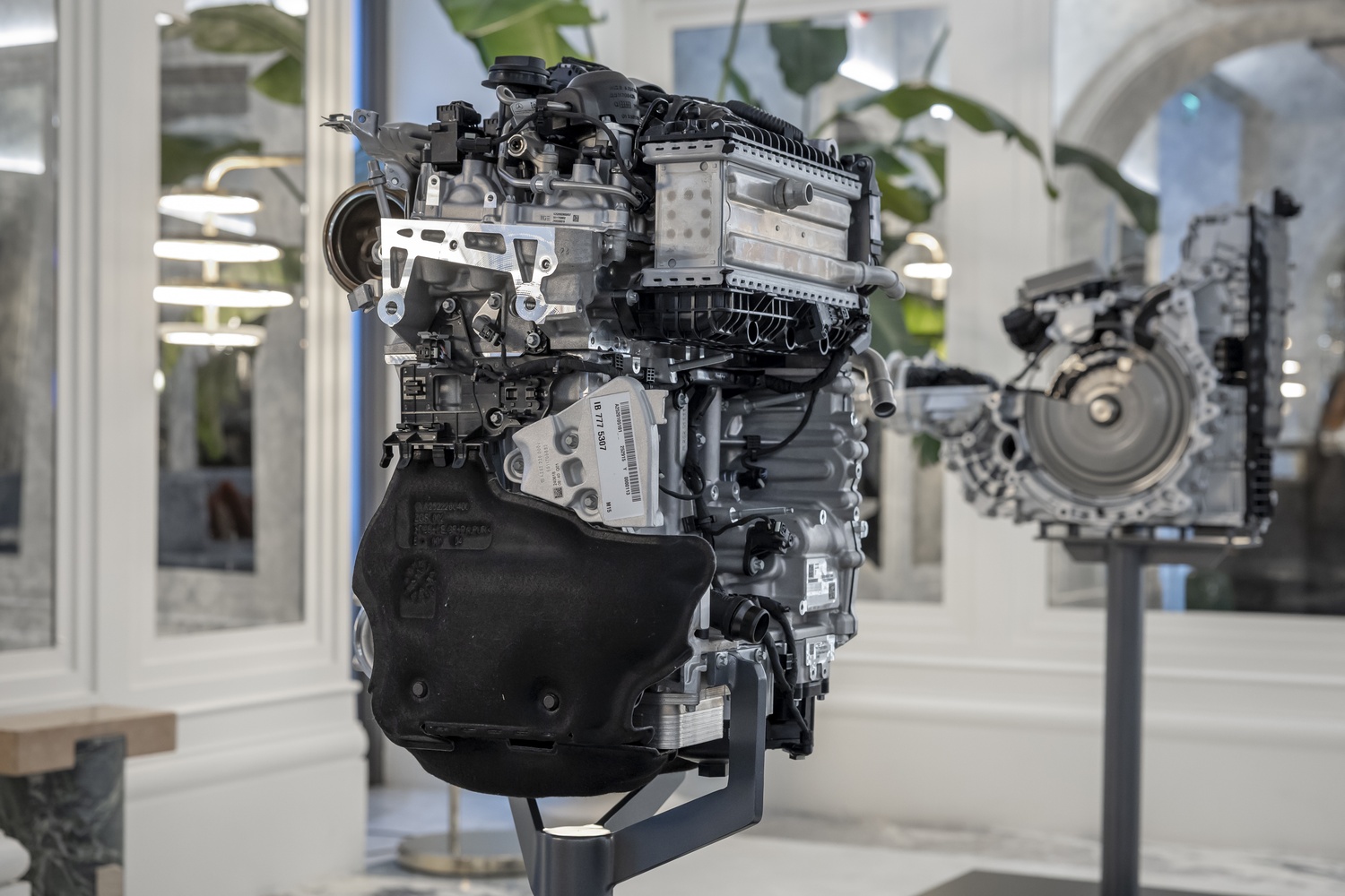 - Motorul cu combustie, dezvoltat de Mercedes-Benz în colaborare cu Geely, este o unitate pe benzină cu patru cilindri, cu o cilindree de 1.5 litri. Motorul, denumit M 252, aparține familiei de motoare modulare (FAME) și este potrivit pentru o varietate de aplicații pentru vehicule.
