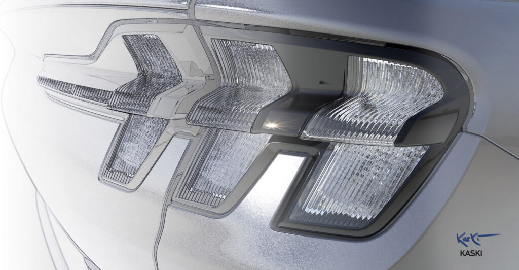 Mustang Mach-E este imediat recunoscut ca un Mustang autentic cu ajutorul elementelor caracteristice precum capota lungă dominantă, design-ul posterior, blocurile optice agresive și stopurile marcă înregistrată formate din trei bare verticale. Designul și construcția inteligente permit un spațiu surprinzător în zona din spate și un portbagaj amplu.