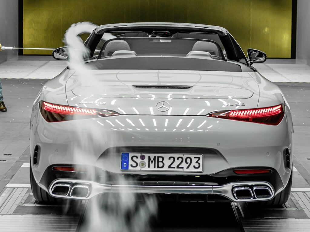- Un punct cheie de dezvoltare al noului SL a fost eficiența aerodinamică ridicată, în special: un echilibru perfect între rezistența redusă și ridicarea redusă. Aici, roadsterul de lux beneficiază de expertiza vastă a Mercedes-AMG în motorsport și de elementele aerodinamice active extinse din față și din spate. Toate elementele de eficientizare sunt integrate perfect în designul exterior. Măsuri detaliate suplimentare reduc coeficientul de rezistență la 0.31 Cd – o cifră excelentă pentru mașinile sport de top deschise! Indiferent dacă este sau nu instalat acoperişul, caracterul vehiculului și caracteristicile de conducere rămân neschimbate!