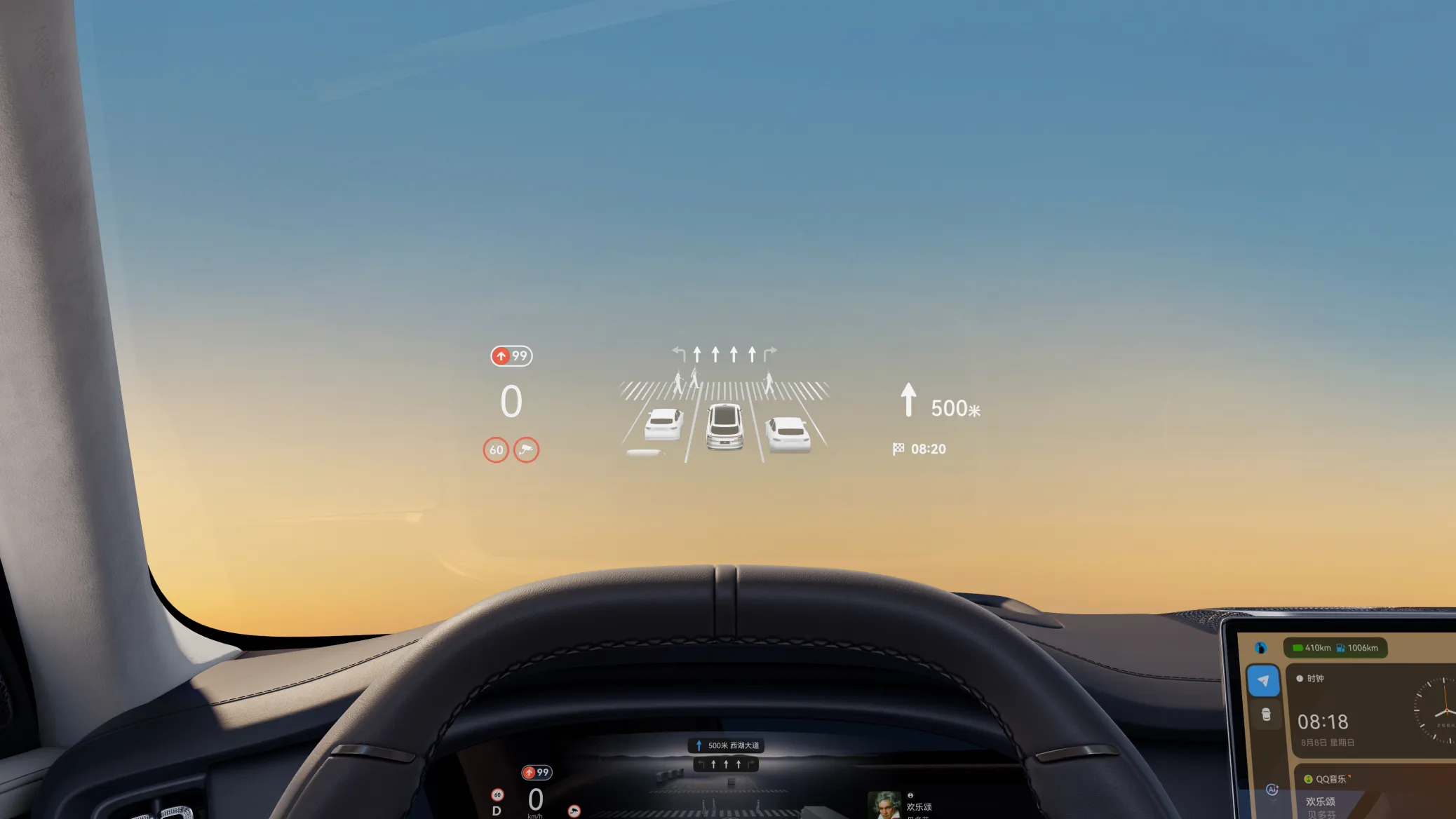 4. Head-up display cu AR de 44 inchi: Luminozitate de până la 20.000 niți, vizibil în orice condiții de lumină.