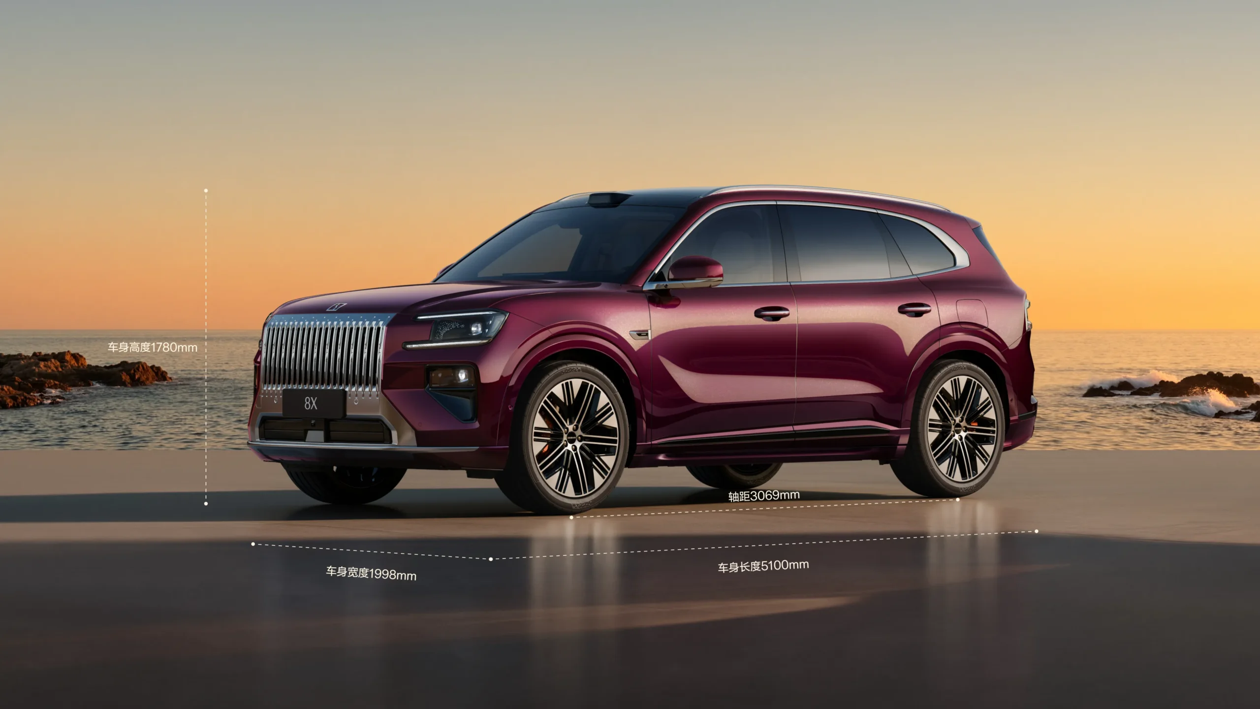 • Dimensiuni: Lungime 5100 mm, lățime 1998 mm, înălțime 1780 mm.
