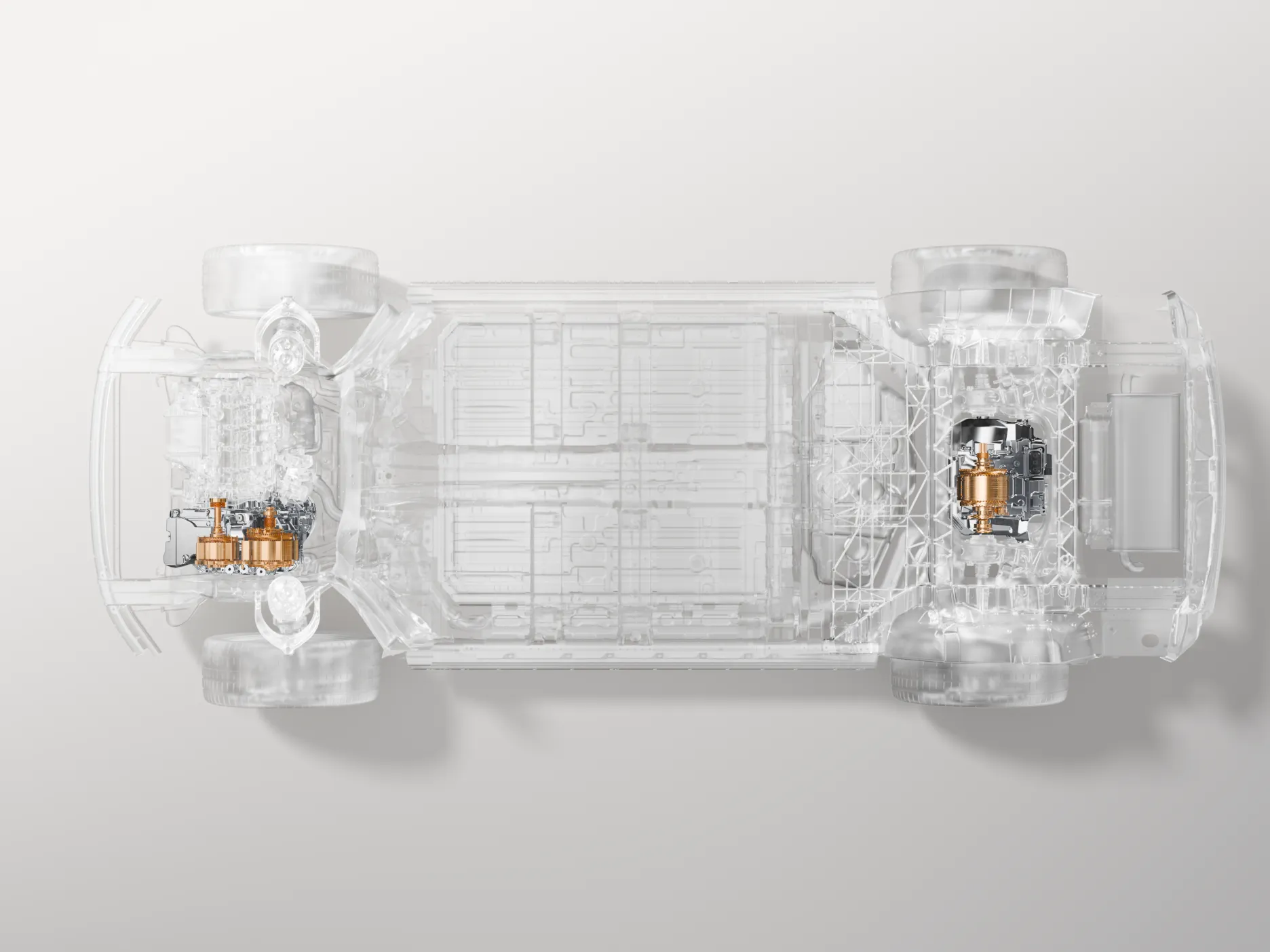 • Turnare monobloc din aluminiu (prin tehnologia Giga-casting) de generația a treia pentru partea posterioară.