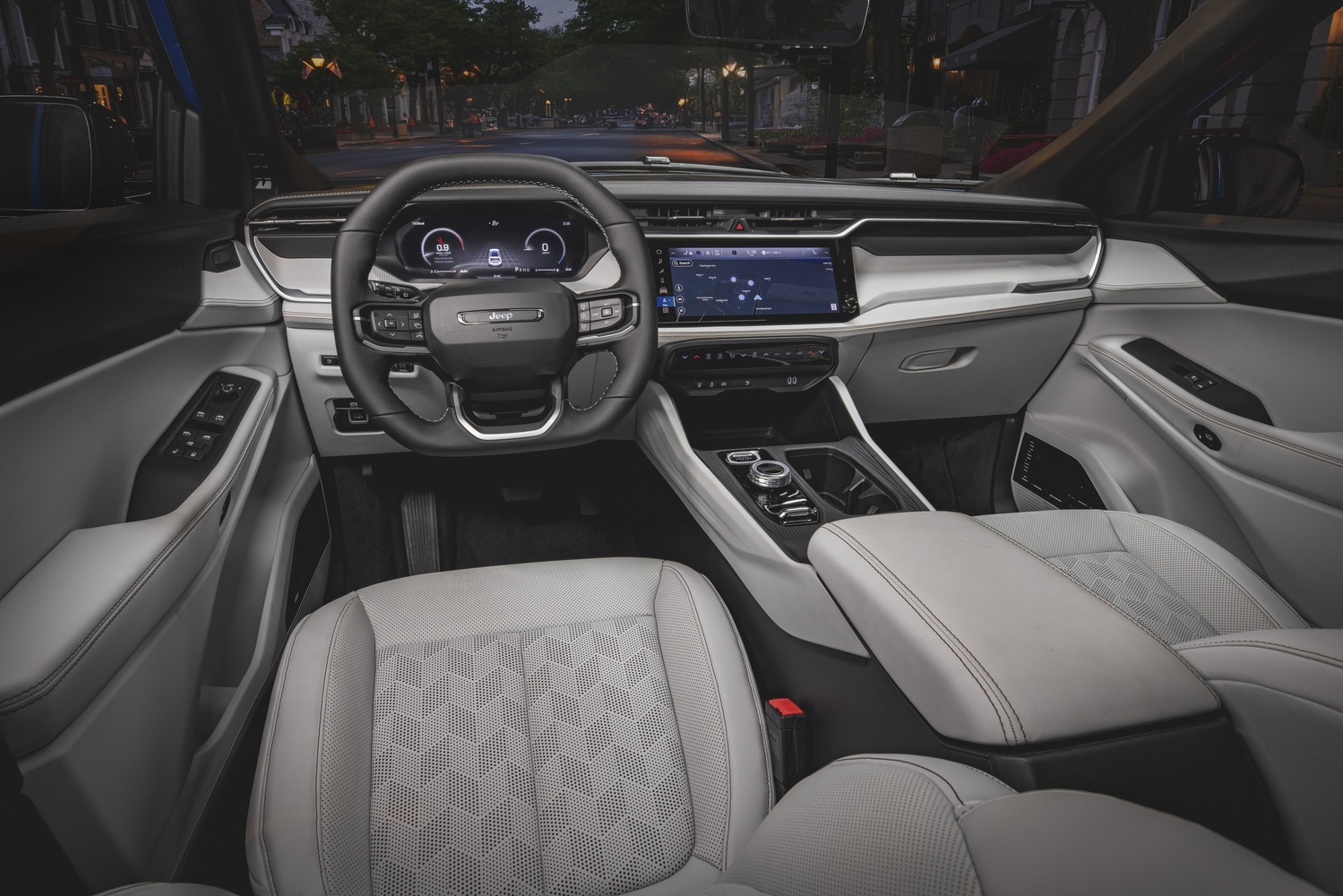 Interiorul Cherokee 2026 este proiectat pentru a fi spațios, tehnologic și practic, cu un accent pe materiale sustenabile și confort premium.