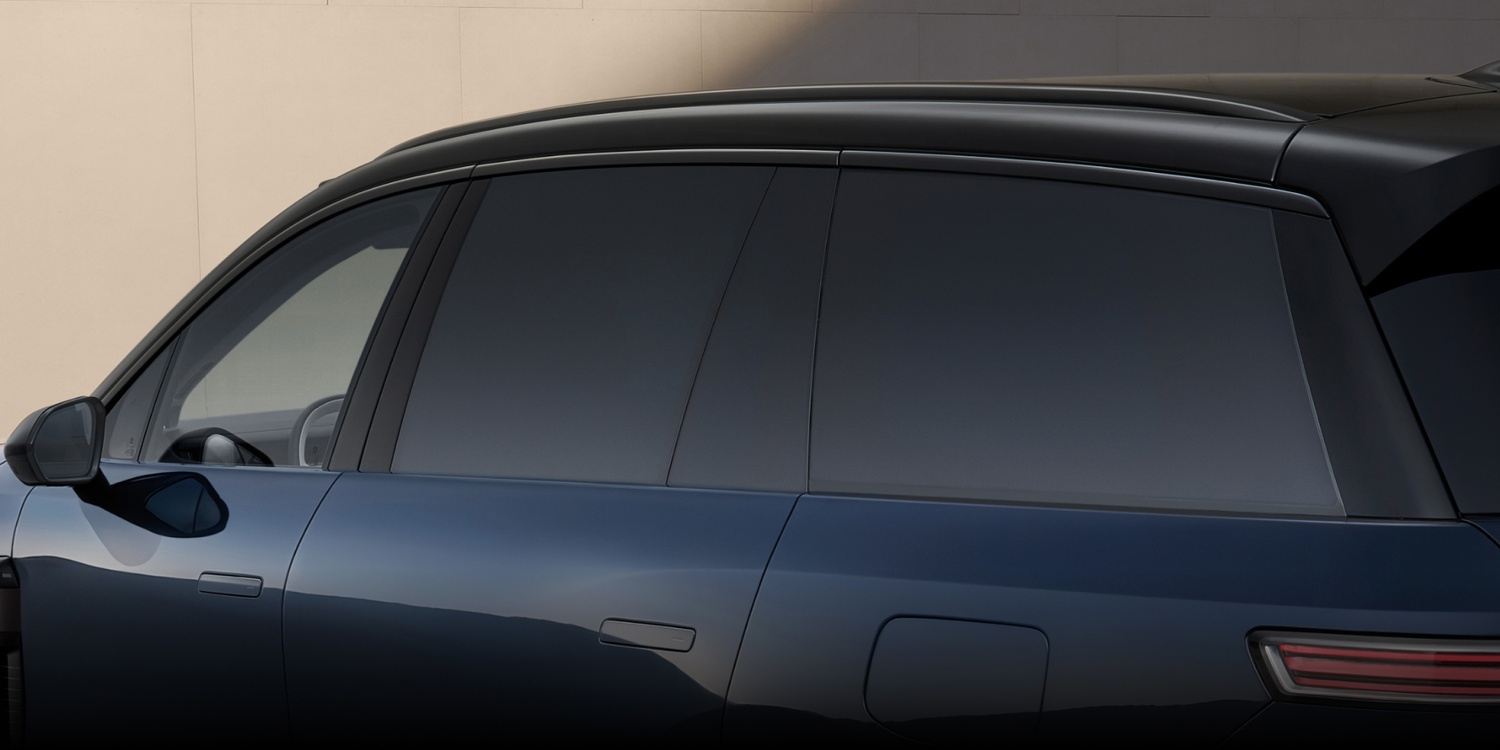• Geamuri laterale electro-chromatice de 1.7 m² (trei niveluri de întunecare treptată, control pe 4 zone în premieră în industrie, mod privat) – doar pe modelul de top Signature.