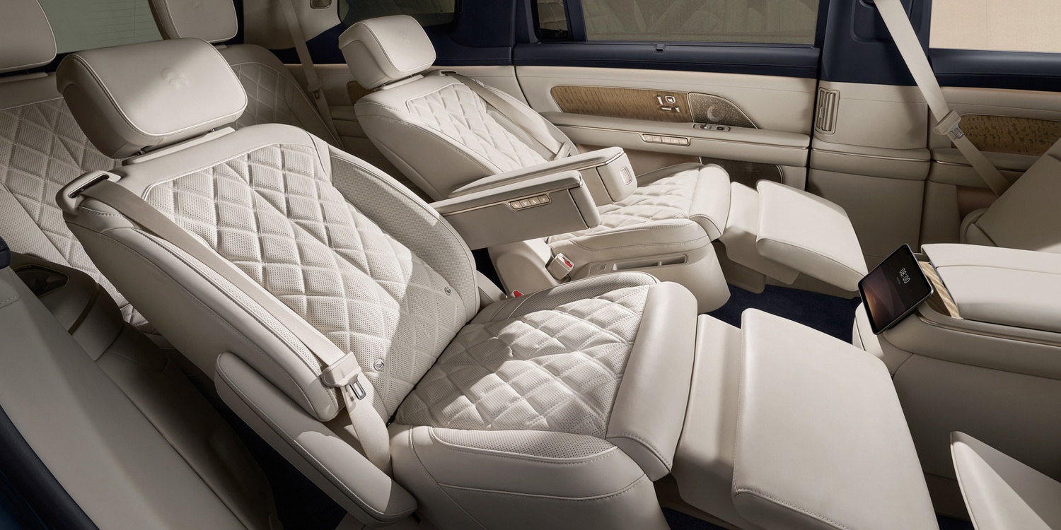 • Pentru al doilea rând de scaune, este introdus sistemul de siguranță cu rabatare exclusiv în clasă, care include airbaguri duble pentru pernele scaunului, centuri de siguranță integrate în scaun, cadre ale scaunelor de înaltă rezistență și structuri ale scaunelor și pernelor cu absorbție de energie, reducând semnificativ riscurile de siguranță atunci când pasagerii se înclină la unghiuri mari.