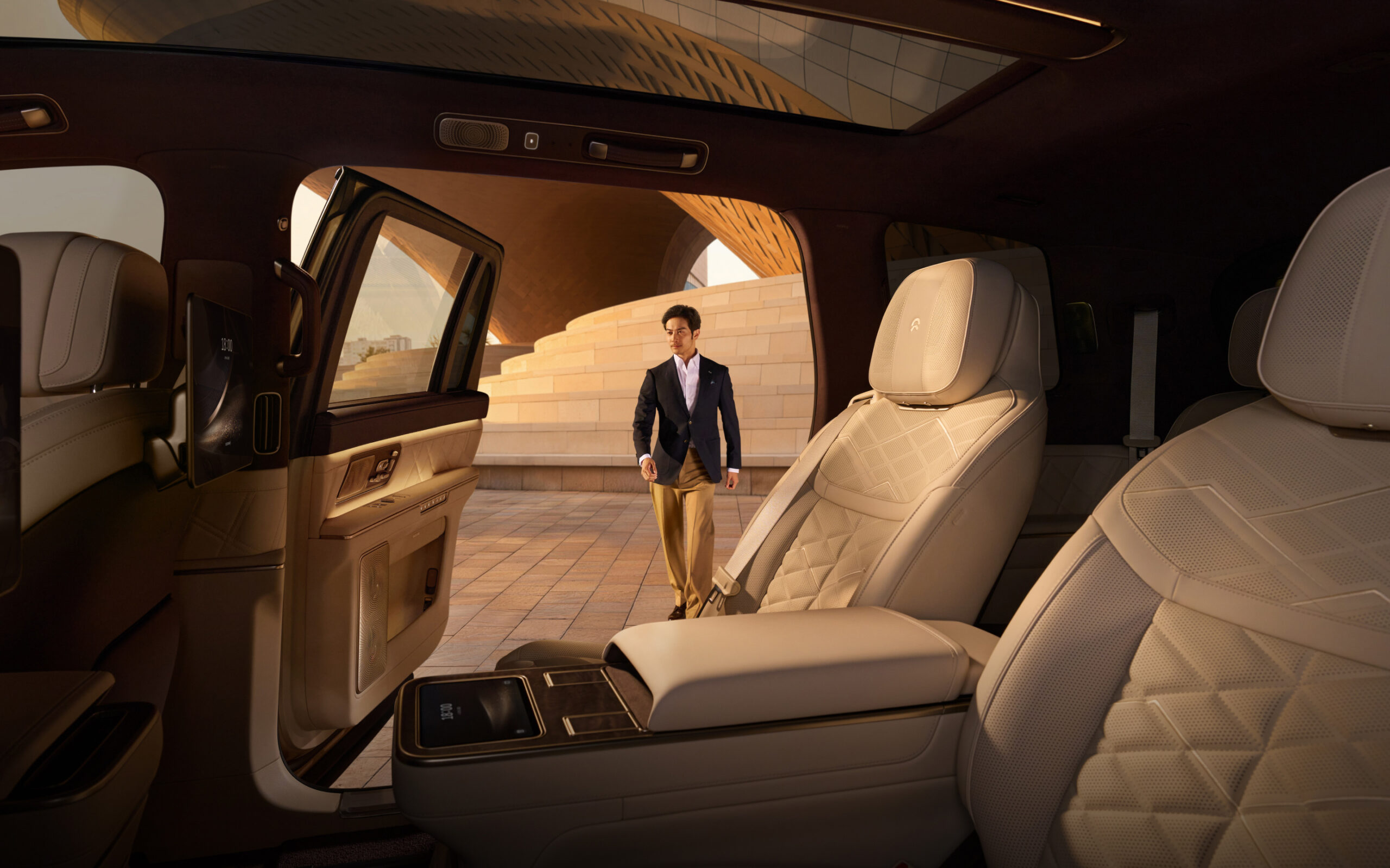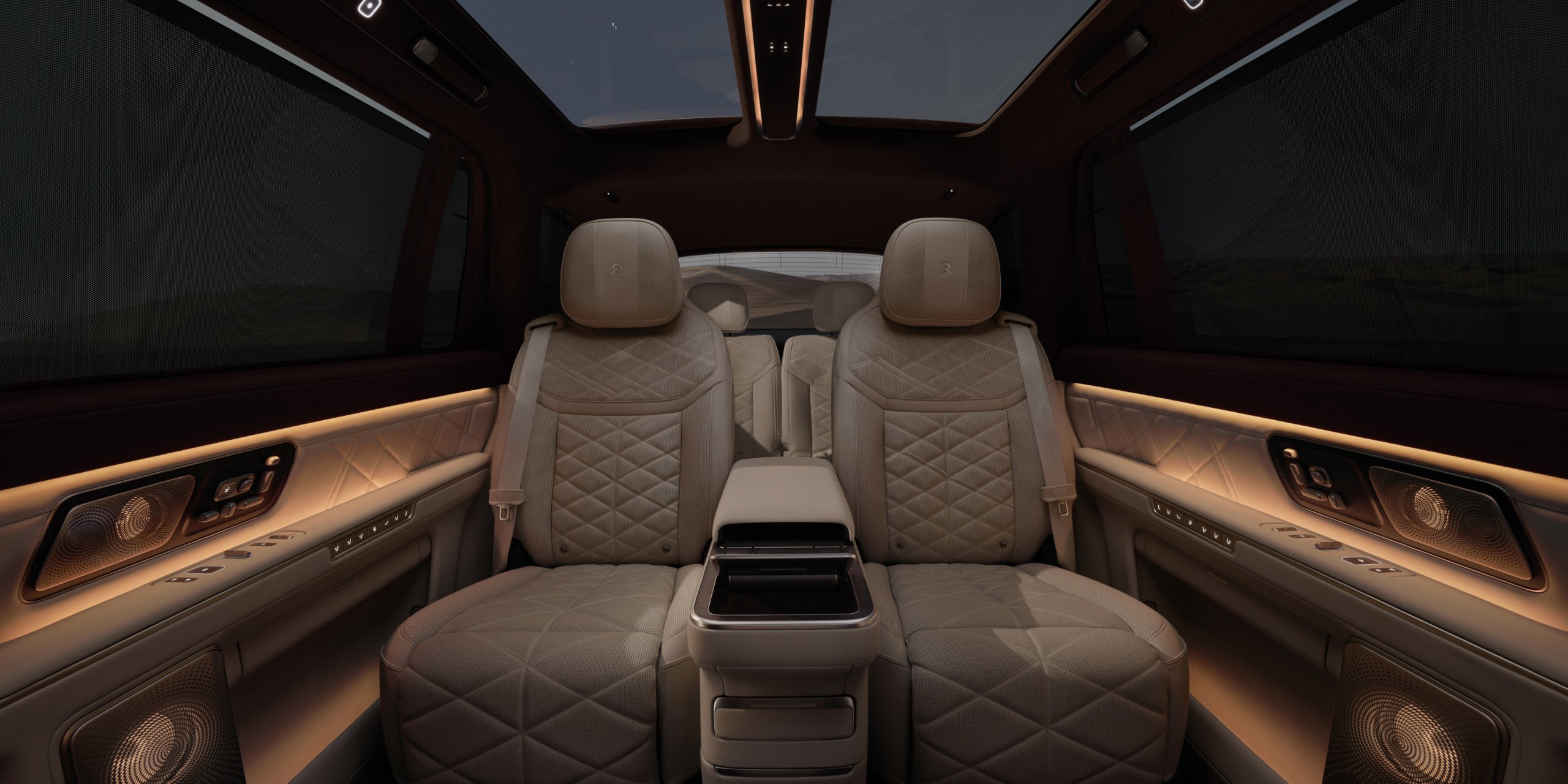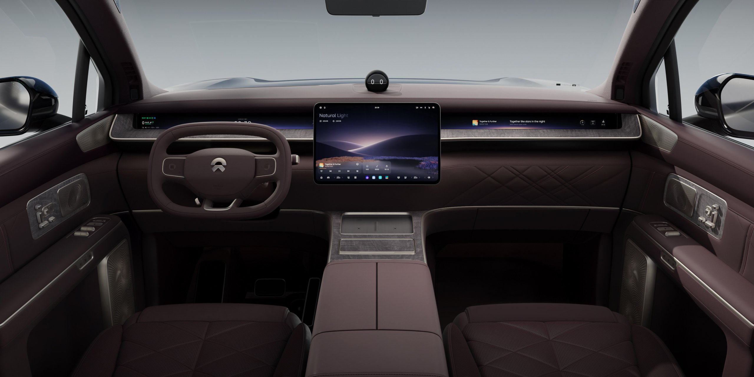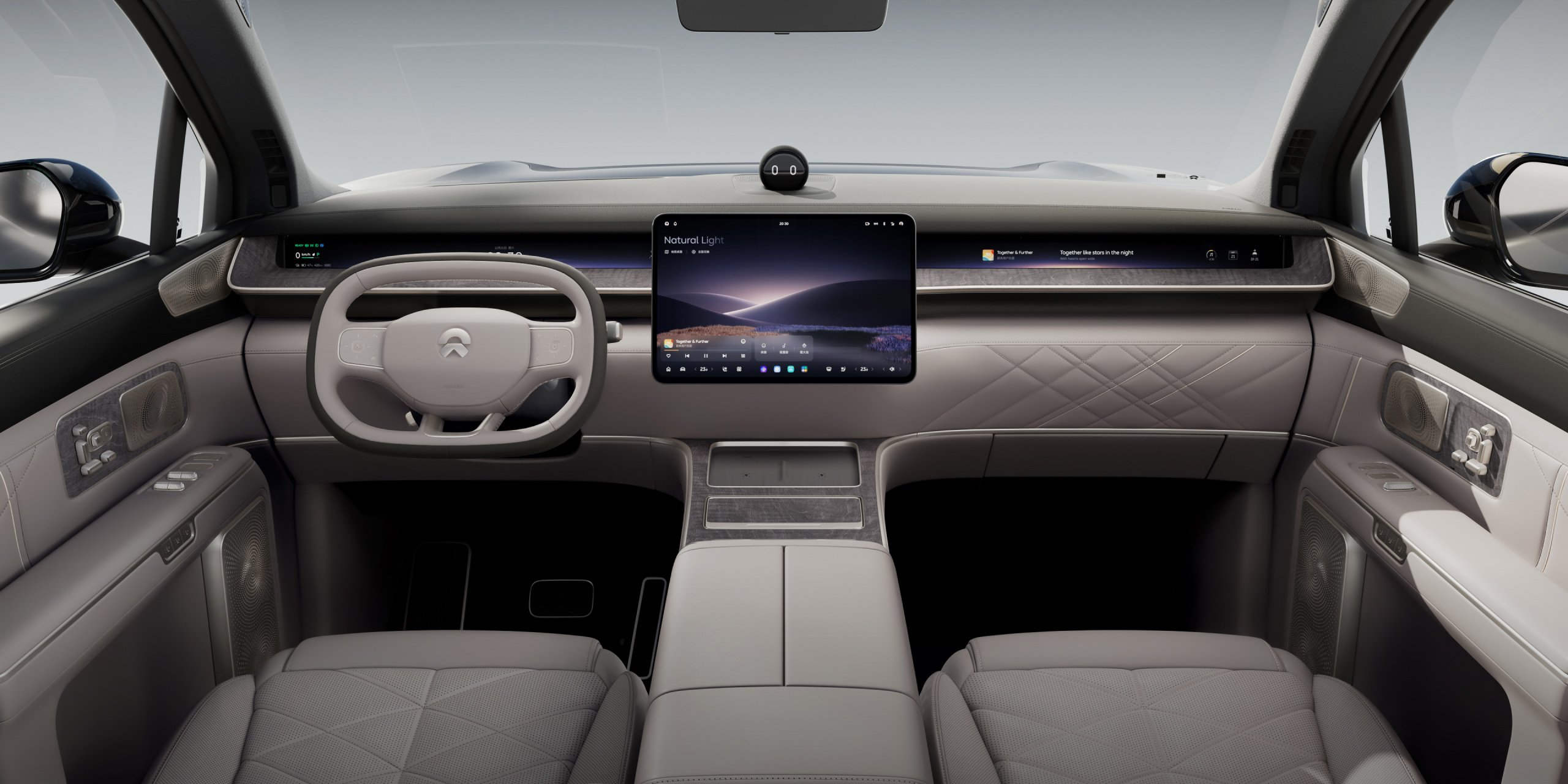 • NIO Link PanoDisplays: Monitoare de 16 inchi, tehnologie tandem AMOLED, rezoluție 3K, lucrează în concert cu difuzoarele din tetiere