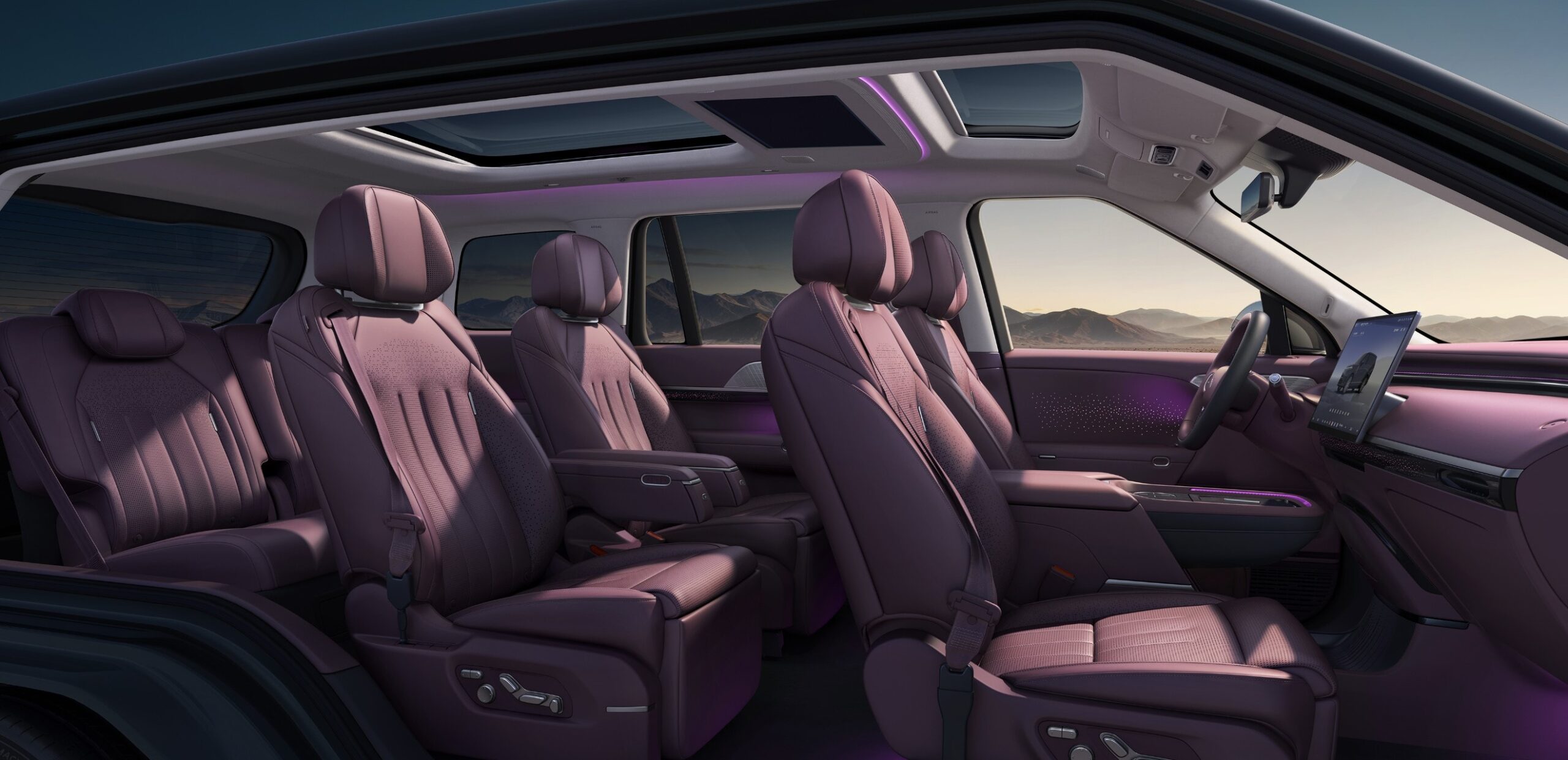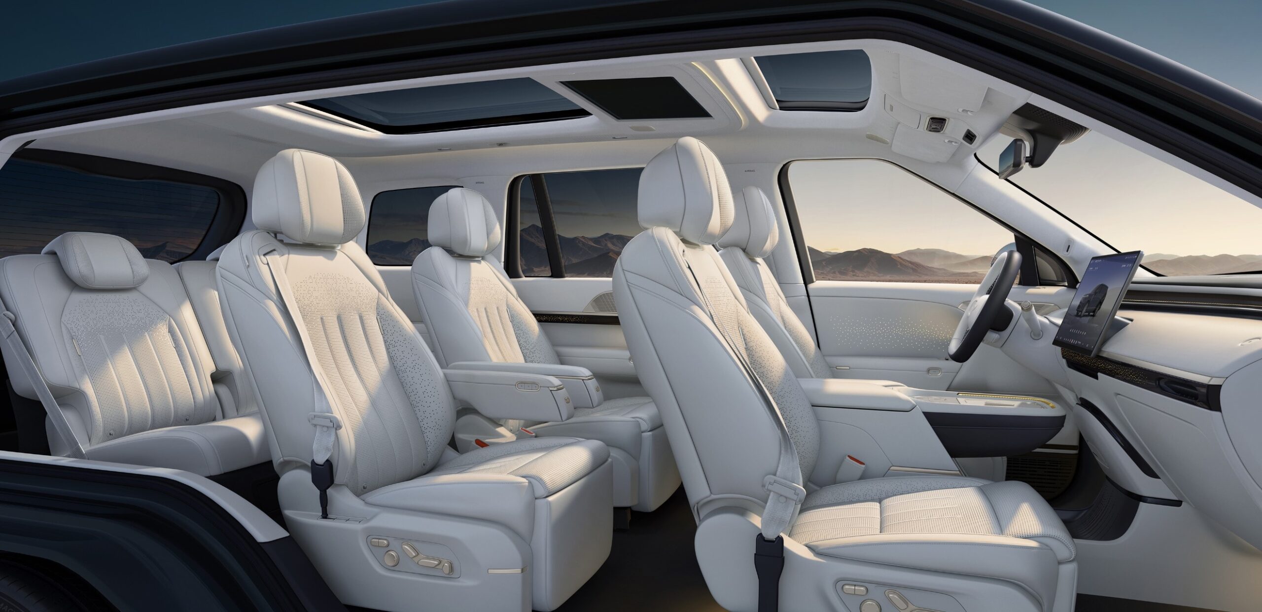 - Geamuri fumurii cu reglare inteligentă a transparenței (AI Dimming Privacy Glass): Timp de răspuns record – 0.16 secunde, izolare UV 99.9%, acoperire completă pe rândurile 2 și 3, reglare continuă inteligentă. Reglarea cu AI este o premieră mondială, suportând reglarea pe zone, reglare adaptivă AI și modul de confidențialitate cu o singură apăsare.