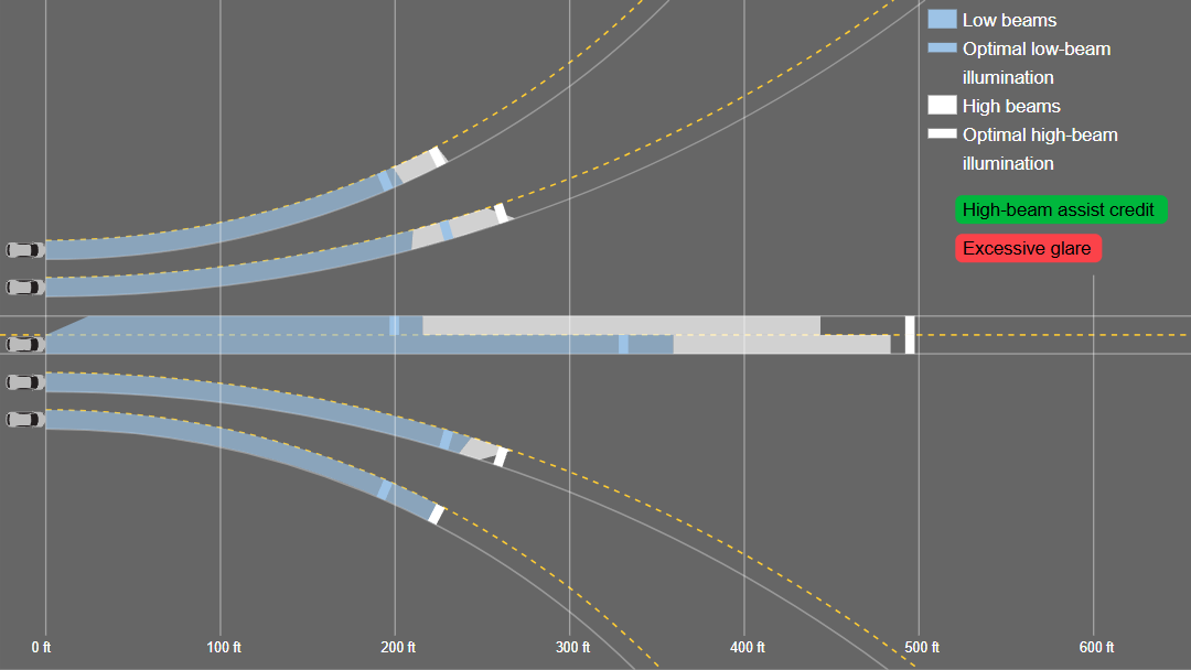 La 60 km/h, Cybertruck a evitat coliziunea cu faza lungă (avertizare emisă cu 2.2 secunde înainte de impact) și cu faza scurtă (avertizare la 1.3 secunde). Creditul pentru asistența la faza lungă a contribuit la performanța excelentă a sistemului.
