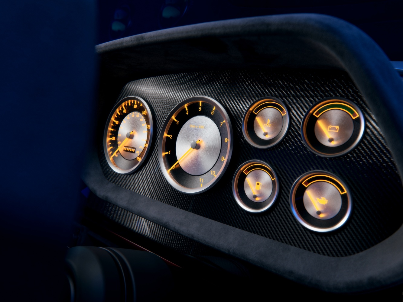 - Materialul compozit este utilizat și în habitaclu. Planșa de bord este fabricată din fibră de carbon și acoperită cu Alcantara. Volanul cu trei spițe și marcaj la ora 12 este îmbrăcat în același material. În fața șoferului există un panou de bord cu ceasuri analogice. Iar pe consola centrală există un panou de control a climatizării și un mini sistem multimedia.