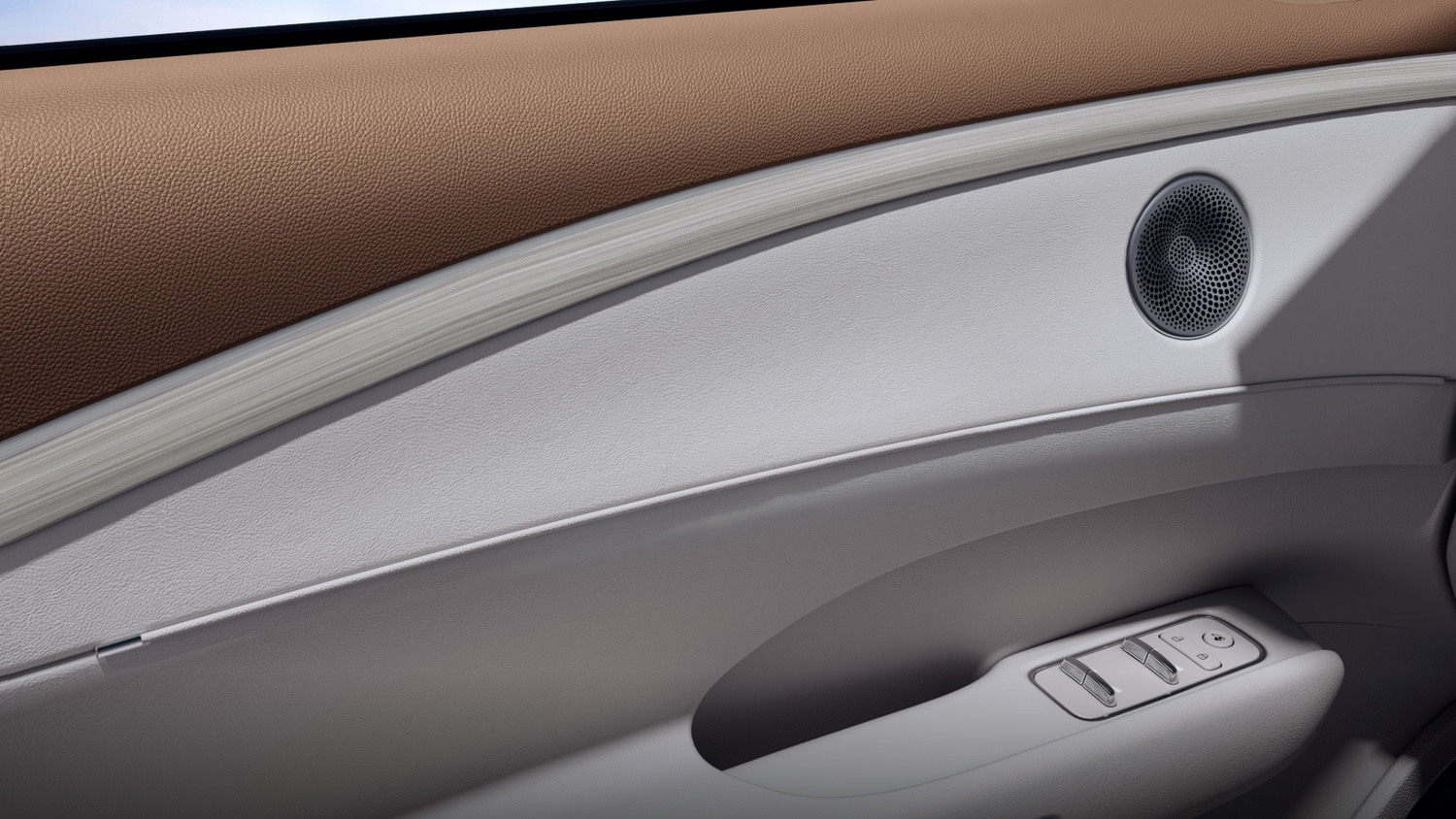 • Un mare accent s-a pus și pe izolarea fonică. Toate geamurile sunt duble (5 mm), iar cele din spate filtrează lumina pentru a proteja intimitatea. În total s-au făcut 35 de optimizări la capitolul NVH, 182 de măsuri de reducere a zgomotului, se folosesc 43 m² de acoperire cu absorbție fonică și izolație, în total performanța izolării fonice fiind mai bună cu 20%.