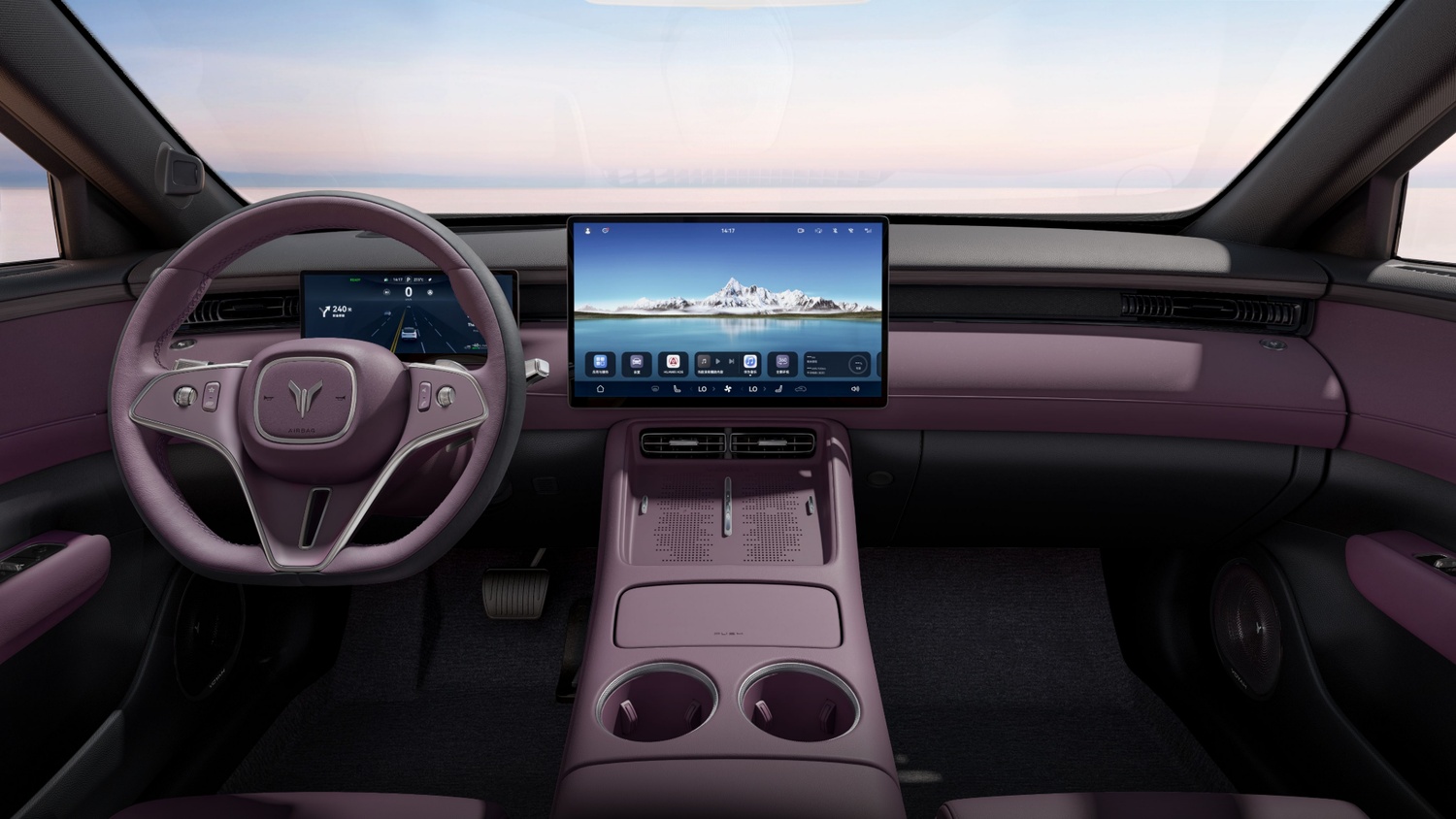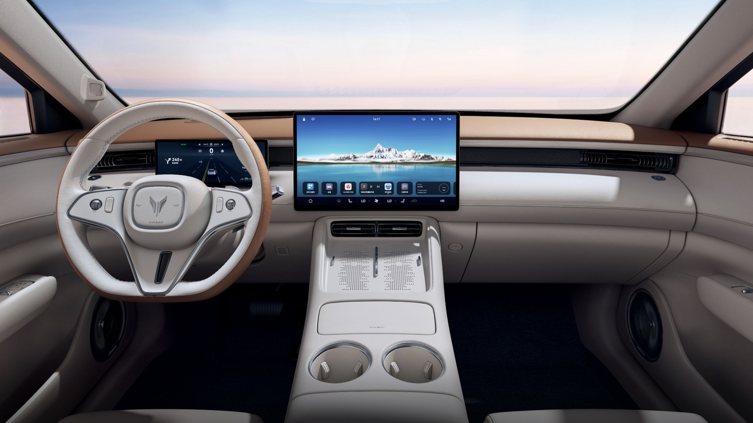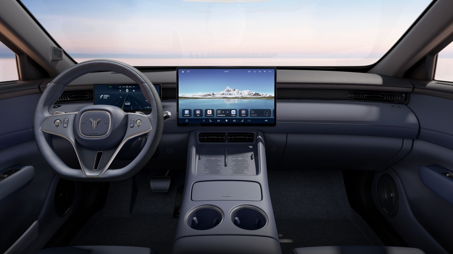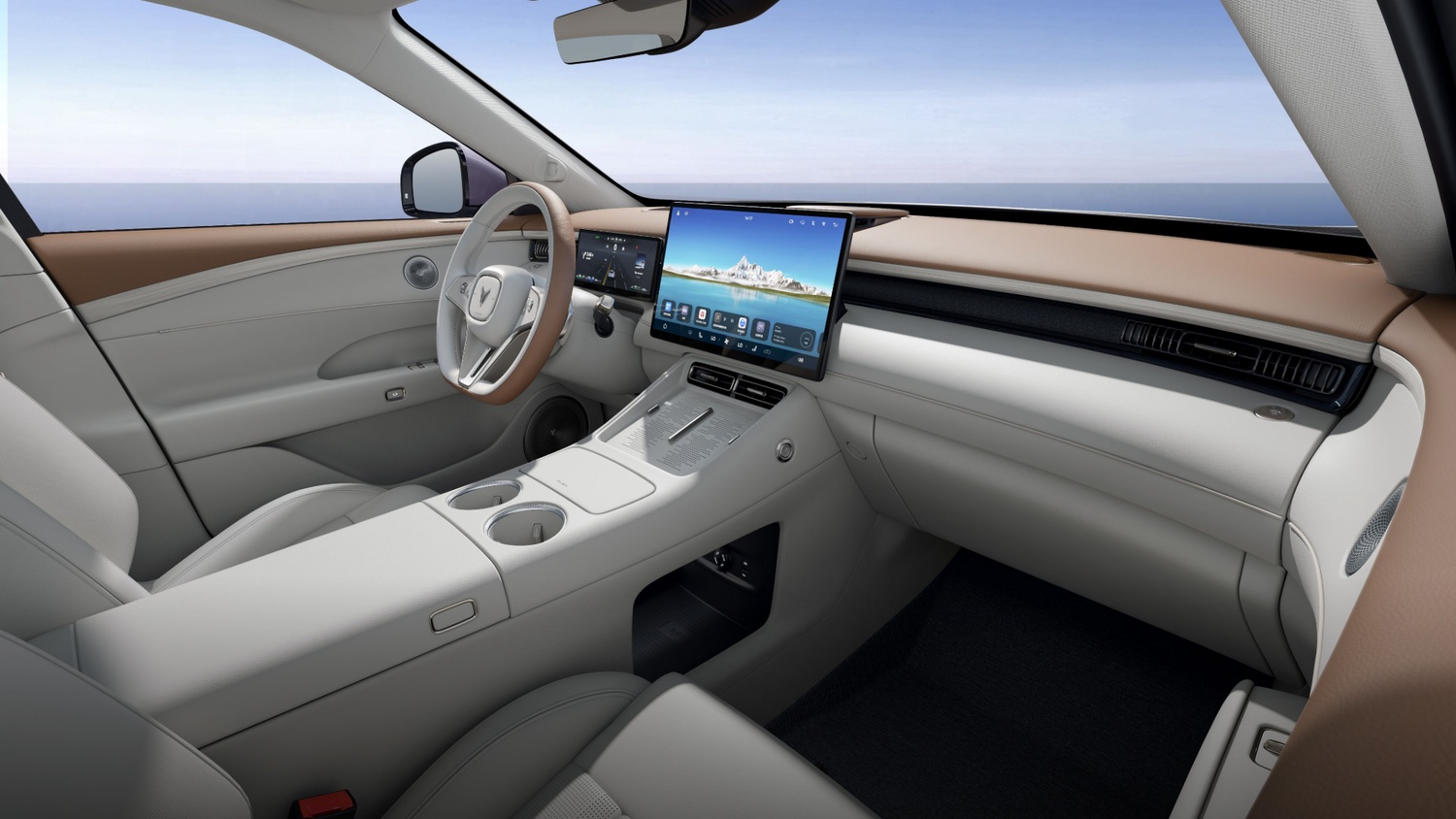 • Cu startul perioadei de presale a fost dezvăluit și interiorul mașinii pentru prima dată în imagini oficiale, căci la Auto Shanghai geamurile erau umbrite. Marea noutate – o planșă de bord complet modificată. Locul a trei ecrane înguste a luat unul dedicat pentru instrumente și altul dedicat de 15.6 inchi pentru multimedia. În loc de sistemul proprietar s-a ales Harmony OS 5, tot mai popular în preferințele clienților.