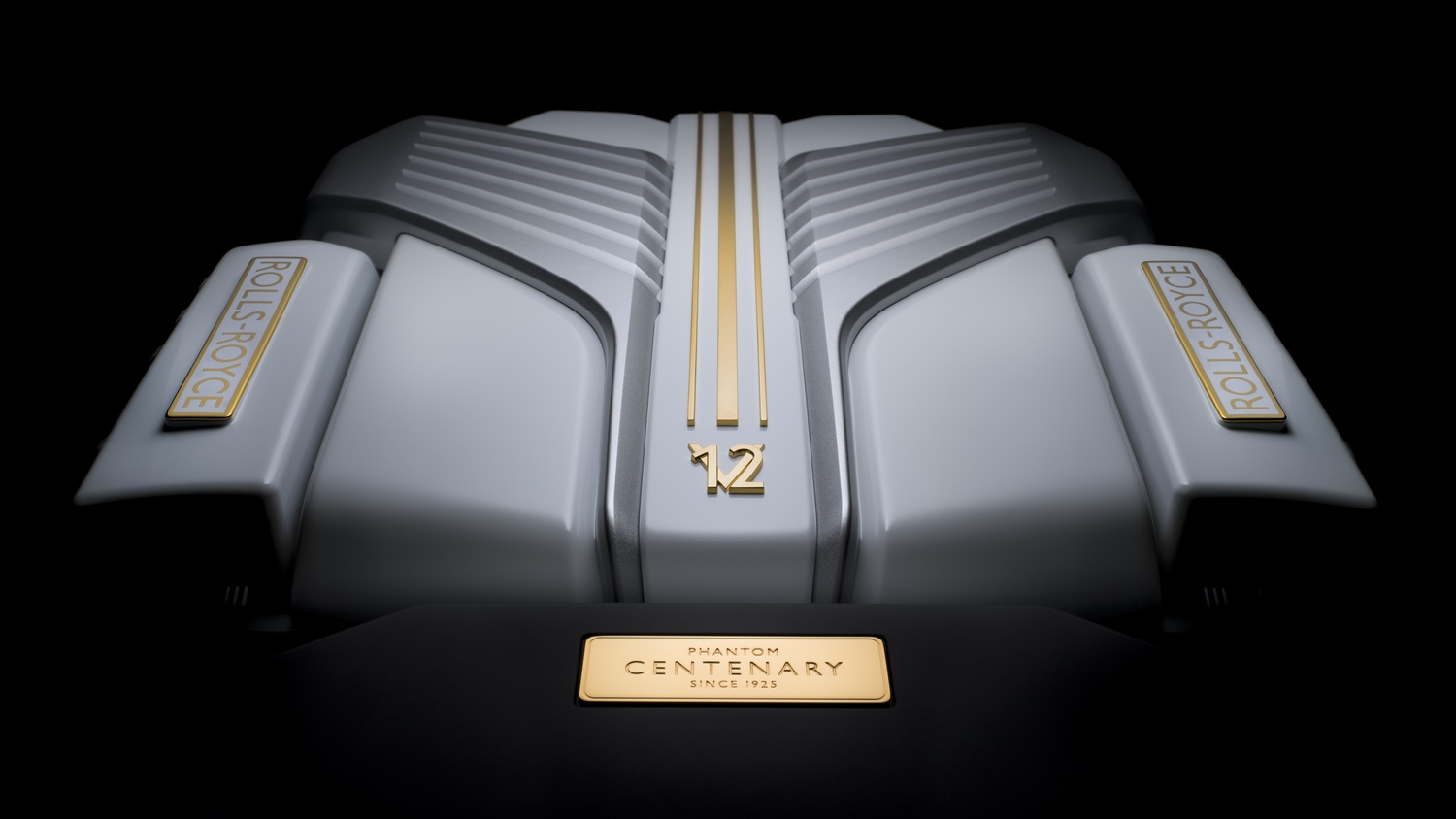 Motorul V12 de 6.75 litri este celebrat cu un capac special, finisat în Arctic White cu detalii din aur de 24 de carate, omagiind puterea sa emblematică. O placă de șasiu și praguri speciale inscripționate „Phantom – 100 Years – Since 1925” completează colecția, care include și o husă personalizată cu broderie aurie.