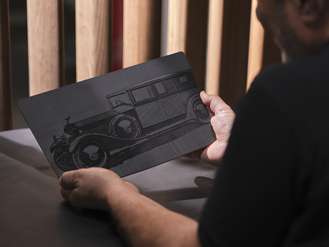 Dezvoltarea tehnicii de gravare a durat șase luni, designerii experimentând cu intensități variate ale laserului pentru a obține echilibrul perfect de culoare. Fiecare element a fost desenat manual, digitizat și gravat, creând o poveste vizuală care leagă trecutul de prezent. Panoul pasagerului include o gravură a sediului actual Rolls-Royce din Goodwood, completând narativa istorică a interiorului.