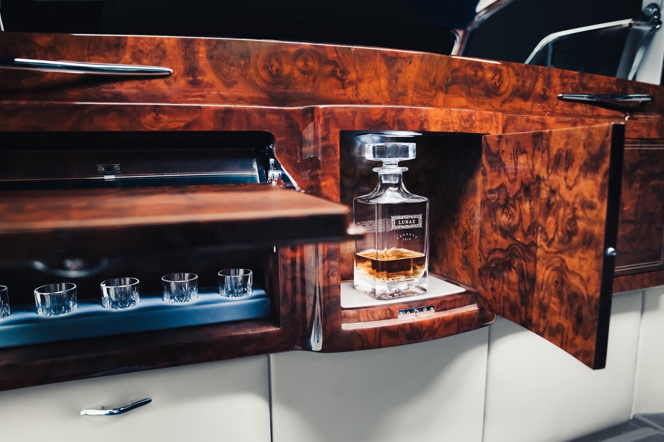 Finisajul exterior nou este un albastru Luminous Deep. Interiorul personalizat includ sistem de navigație prin satelit, hotspot Wi-Fi, un sistem multimedia ascuns în cotieră (cu Apple CarPlay), un ecran de intimitate acționat electric, un sistem de control silențios a climatizării, porturi USB, scaune încălzite și un mini bar făcut manual. Covorașele sunt din lână de alpaca, iar panoul de instrumente are noi indicatori, inclusiv de autonomie.