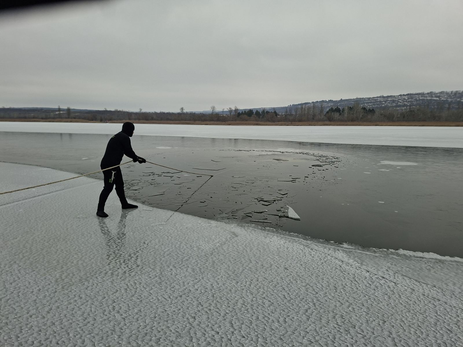 Potrivit informațiilor recepționate la data de 16 februarie 2026, la ora 17:21, un cameraman amator, care efectuase filmări cu drona deasupra lacului, a observat, la aproximativ 200 de metri de mal, un autoturism scufundat sub stratul de gheață și a alertat serviciile de urgență.