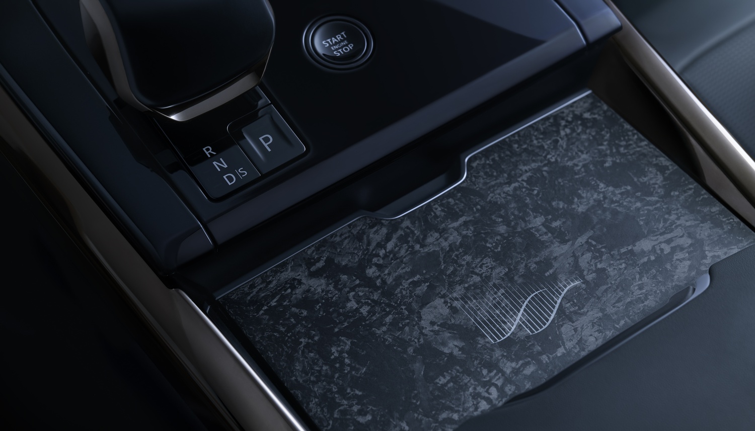 Scaunele din piele Windsor în combinații precum Ebony și Lunar, cu cusături Light Cloud, sunt completate cu detalii din fibră de carbon satinată și comenzi ceramice negre oferind un ambient luxos și individualizat.