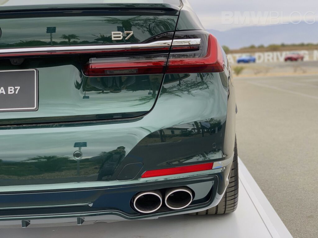 Din punct de vedere a designului, Alpina a instalat pe Seria 7 facelift noi bare de protecţie, cu prize de aer active în faţă. Alături de un spoiler pe capacul portbagajului mai există o serie de logouri tipice Alpina. Caroseria poate fi vopsită în nuanţele exclusive ALPINA Blue metallic sau ALPINA Green metallic, însă oricare alta din paleta BMW sau BMW Individual poate fi aleasă.