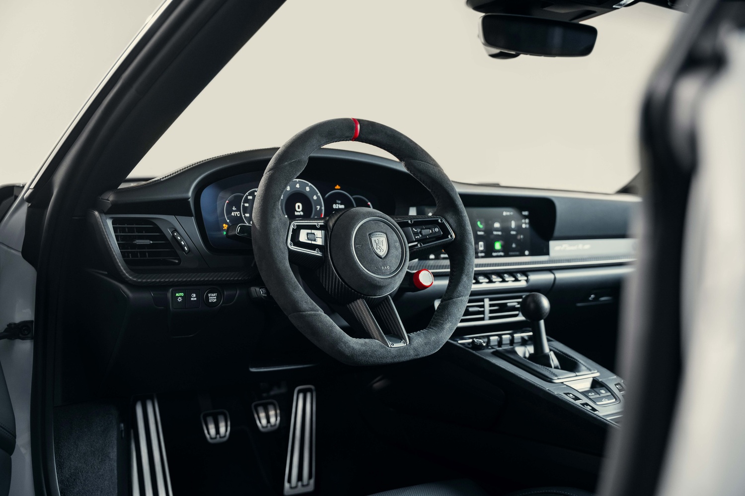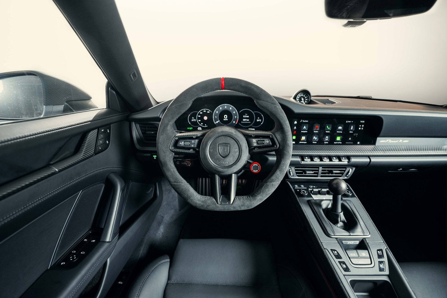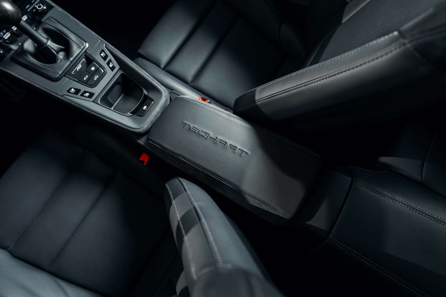 - Materiale: Piele personalizată, Alcantara, cusături contrastante, perforații unice, realizate manual în atelierul TECHART.