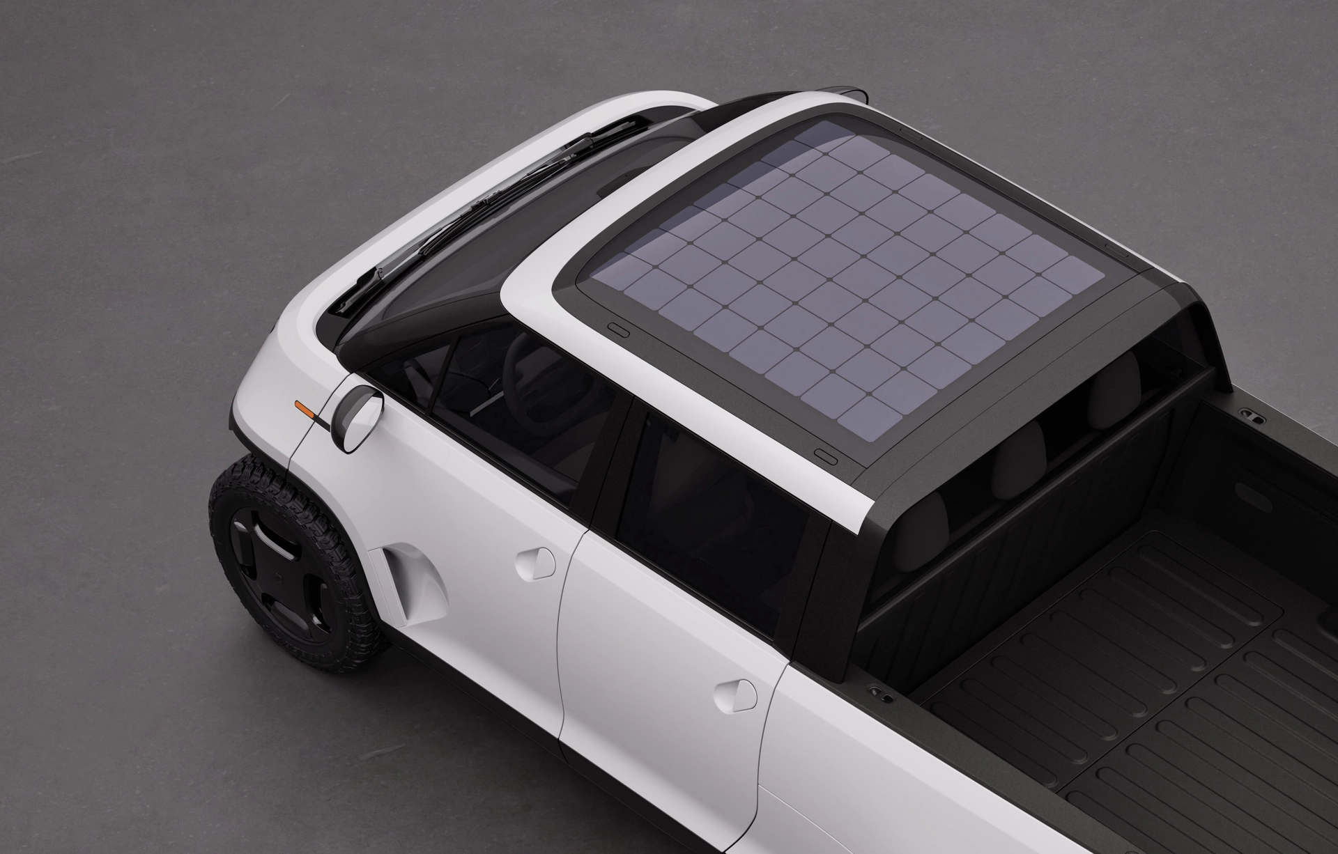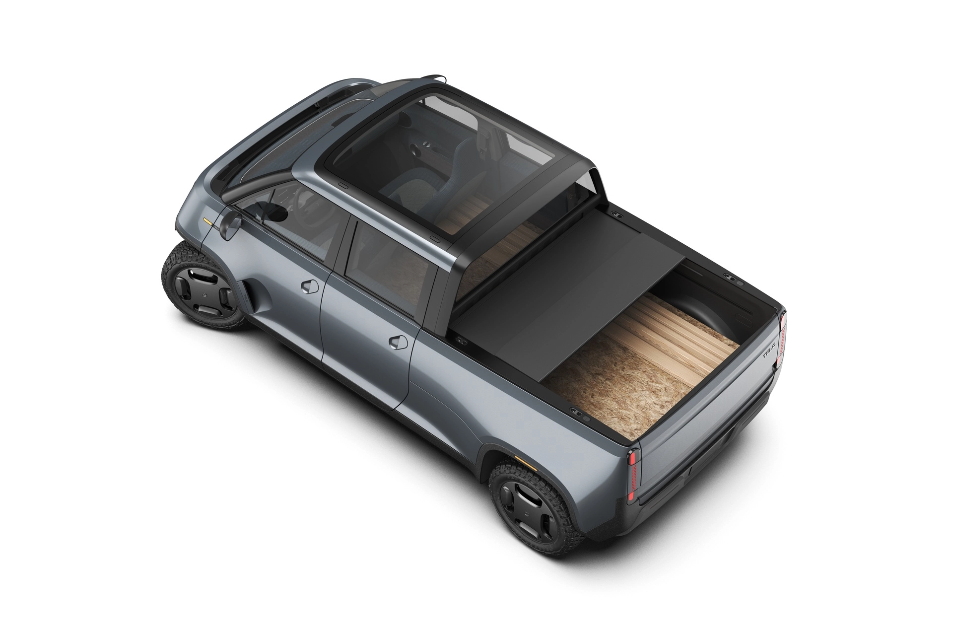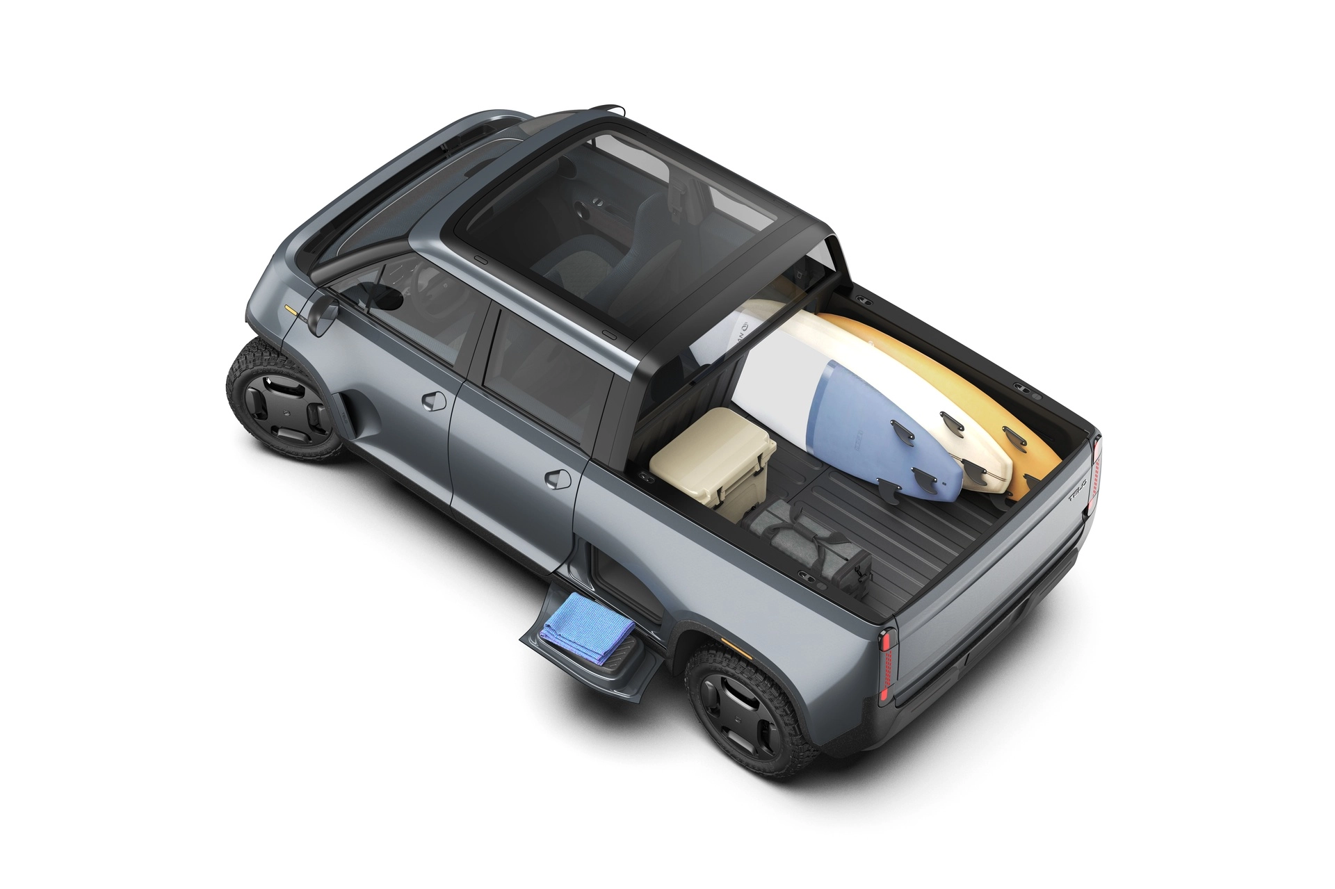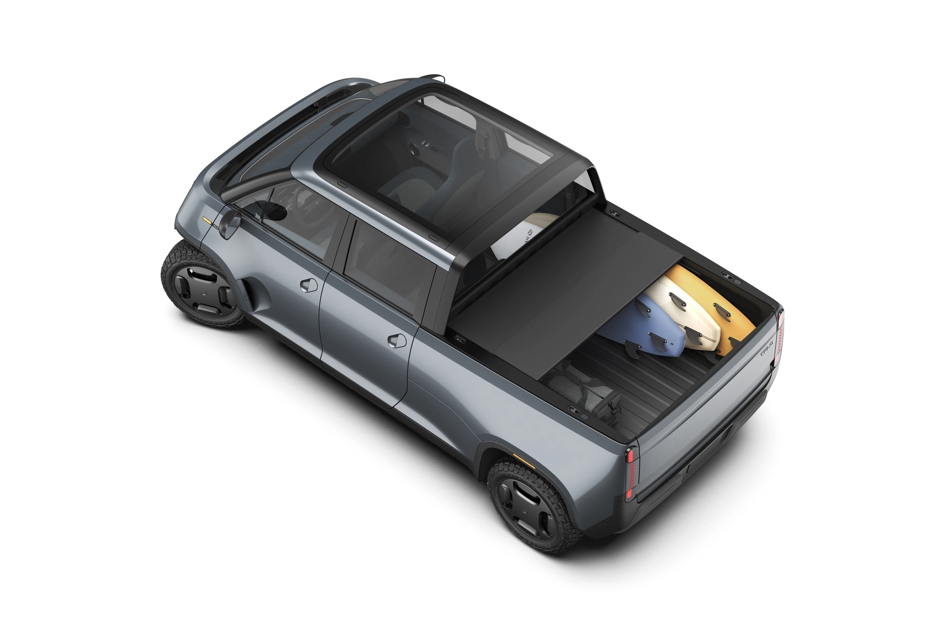 - Amprentă compactă: TELO MT1 are lungimea unui MINI Cooper SE, dar oferă spațiul interior al unui Toyota Tacoma, fiind cel mai mic pickup din piața americană.