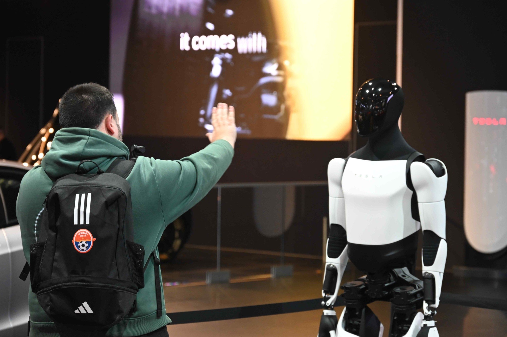 În schimb, atenția se concentrează pe actualizările recente ale gamei: Model Y facelift și Model 3 facelift, ambele prezente în stand. Totuși, vedeta incontestabilă rămâne robotul umanoid Optimus (Gen 2 instalat în stand), aflat încă în faza de dezvoltare avansată. Acesta integrează inteligență artificială și este conceput pentru a înlocui munca repetitivă și periculoasă a oamenilor – sarcini unde răbdarea și precizia sunt esențiale.