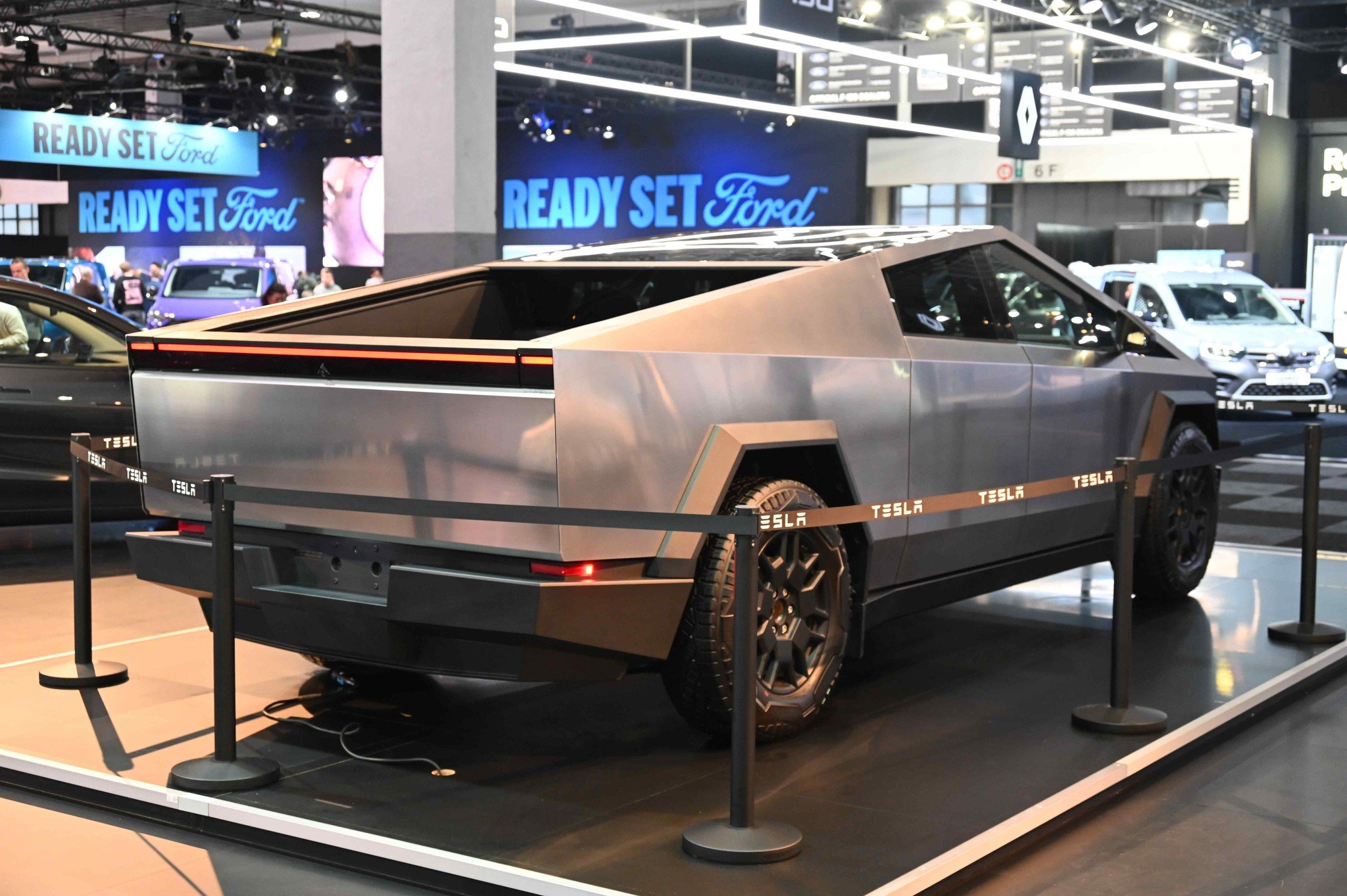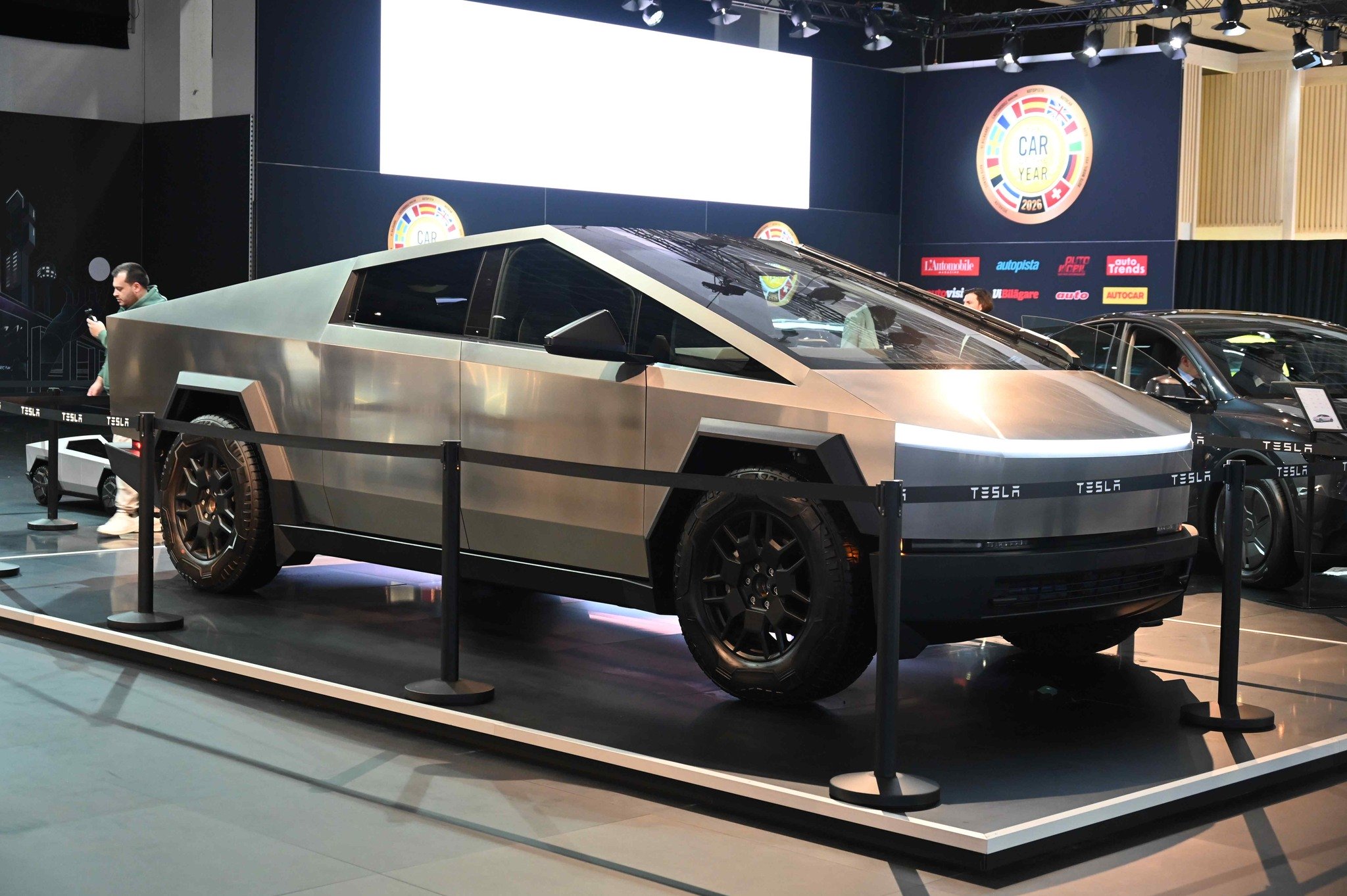 Standul Tesla de la Salonul Auto de la Bruxelles a părut neobișnuit de calm în comparație cu edițiile anterioare sau cele amenajate în alte expoziții, când mulțimea se înghesuia în jurul modelelor. Cybertruck-ul l-am văzut îngrădit, iar puțini vizitatori s-au arătat interesați de el – probabil din cauza faptului că modelul a fost văzut deja intens în America, Europa și chiar în Chișinău.